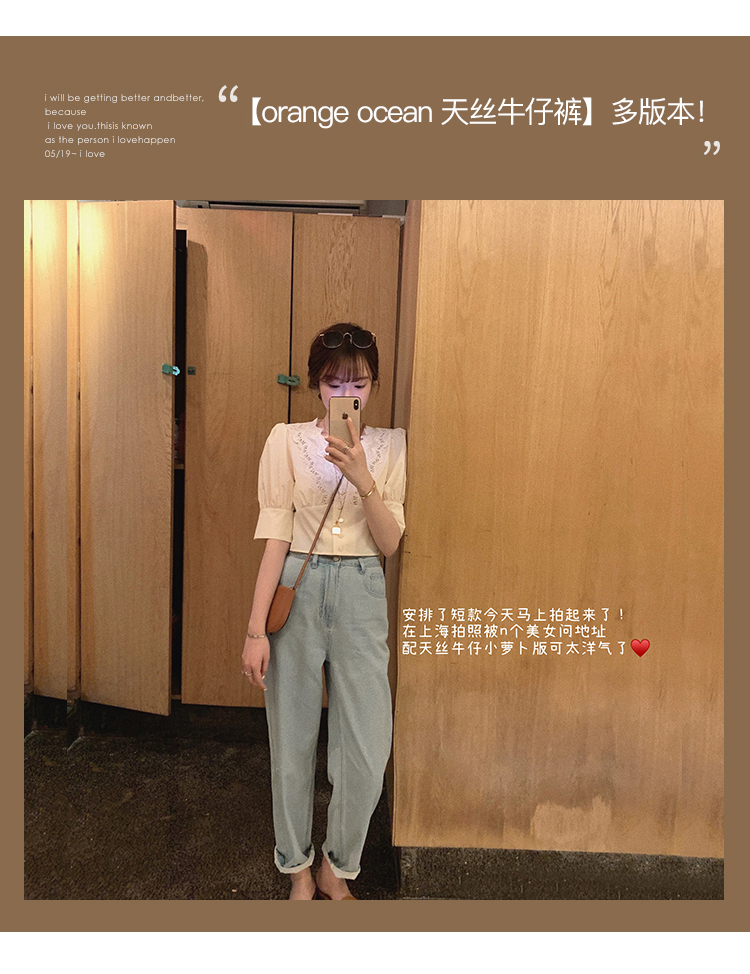 【金蘑菇菇 orange ocean天丝牛仔裤】修腿型复古直筒休闲萝卜裤