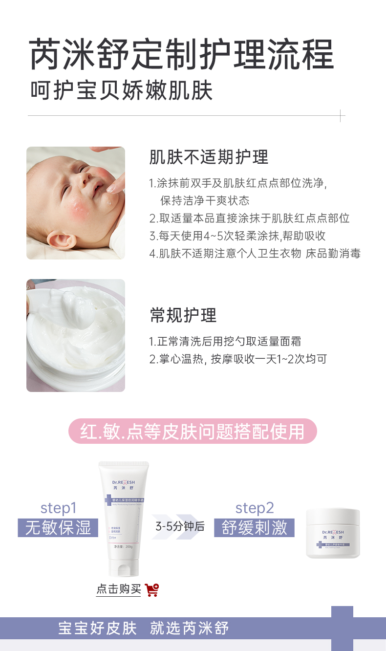 【小白罐】芮洣舒婴幼新生儿精华膏舒缓修护面膏宝宝滋润肤50g(新老包装随机发)