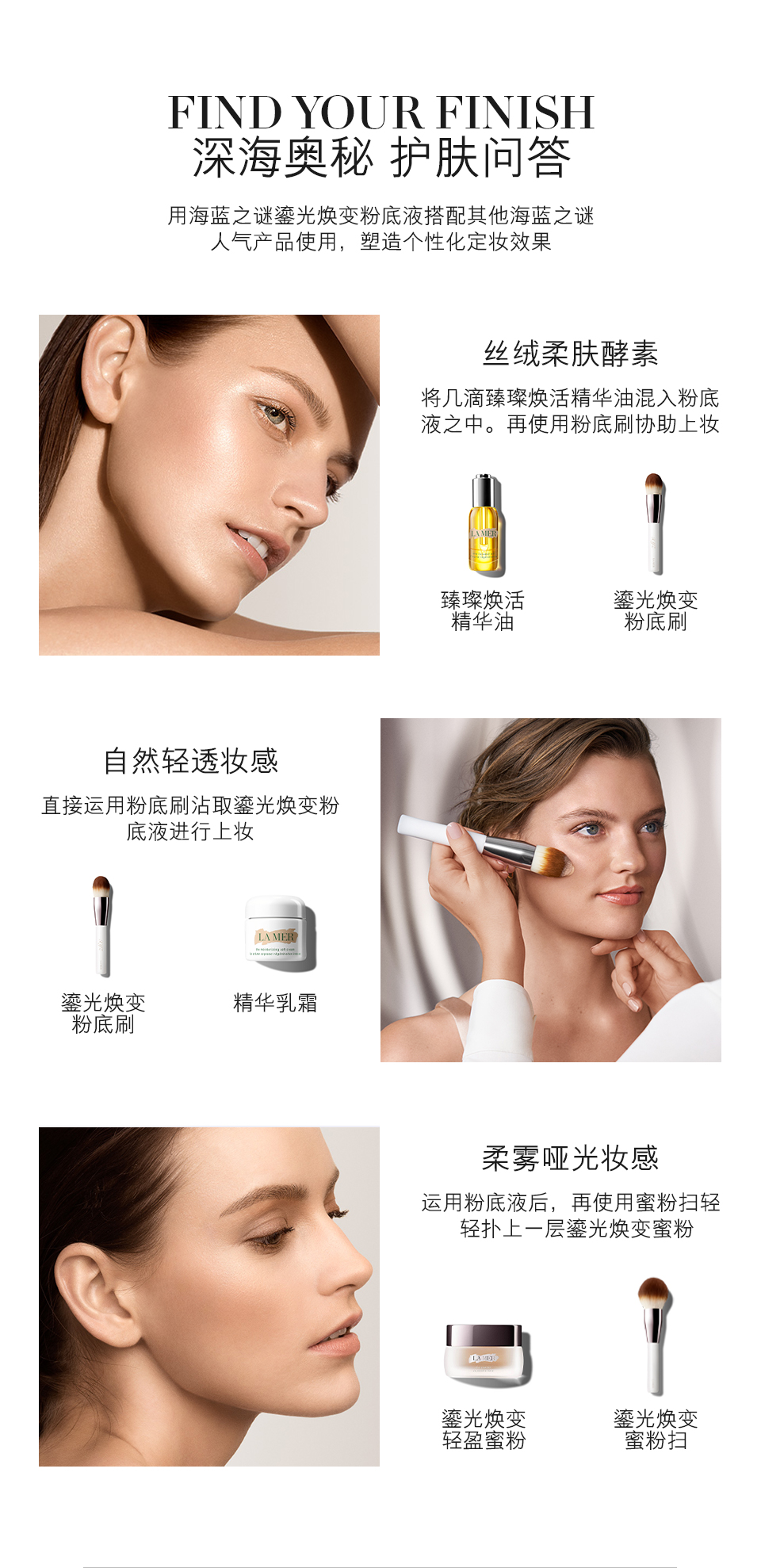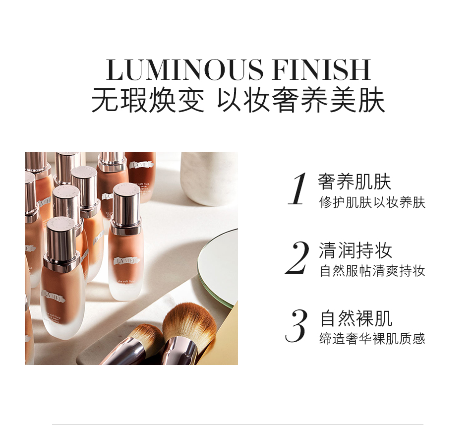 - 使用时摇匀。用海蓝之谜鎏光焕变粉底刷均匀涂抹于面部,混合向外涂抹在颈部,打造完美无瑕妆容。按需要叠加涂抹。然后按需要使用鎏光焕变遮瑕膏。想获得最佳效果,可用鎏光焕变蜜粉定妆。