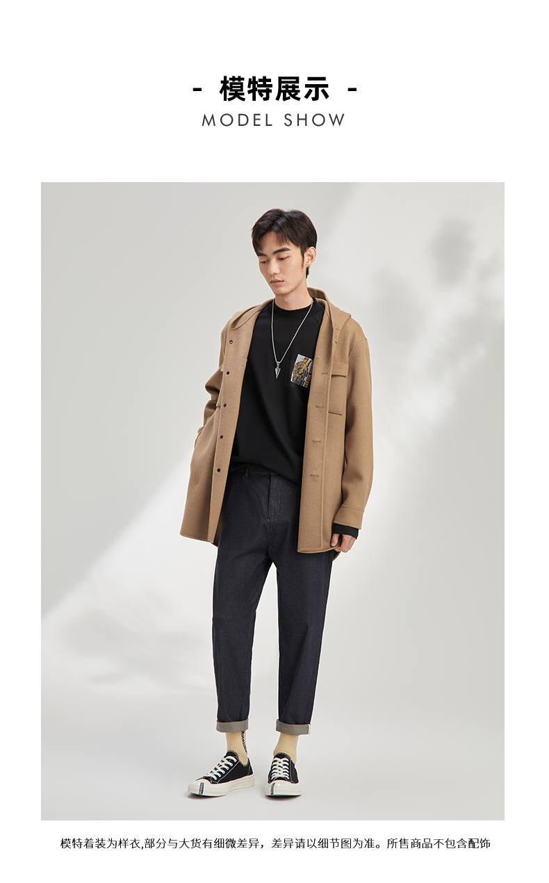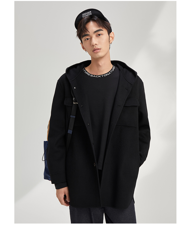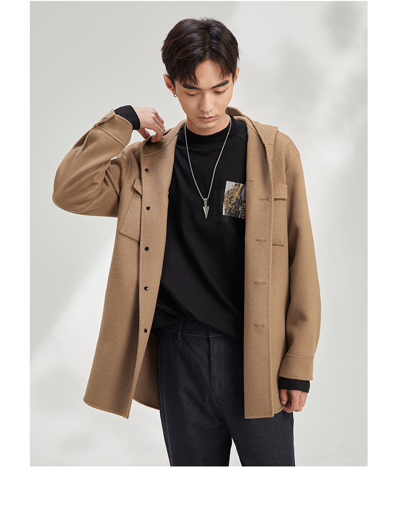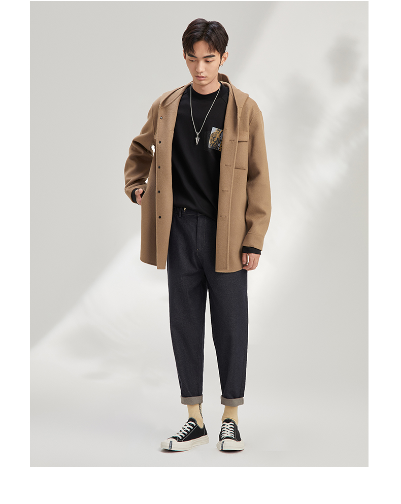 秋季呢子外套男宽松潮流帅气夹克男短款含78.8%羊毛毛呢大衣120328005