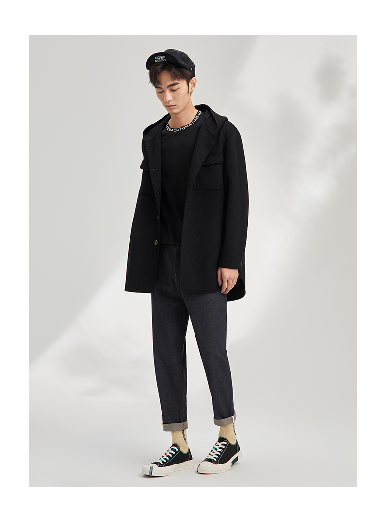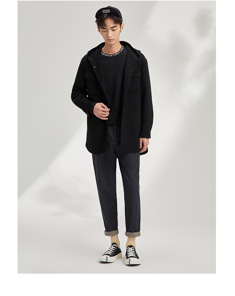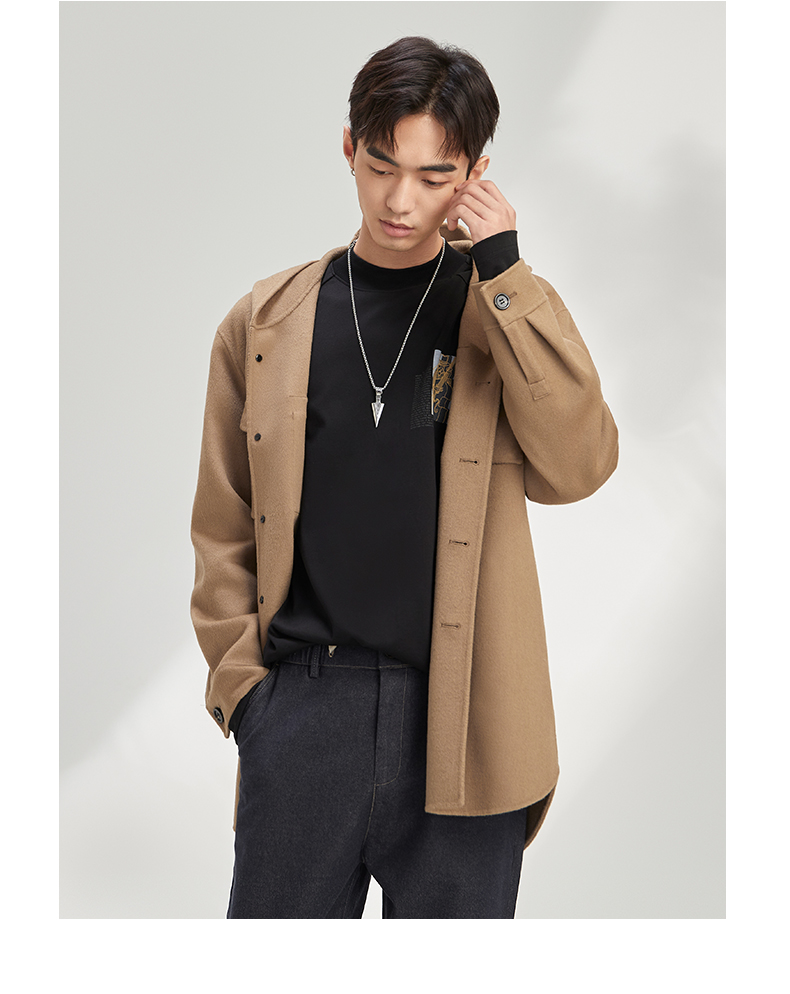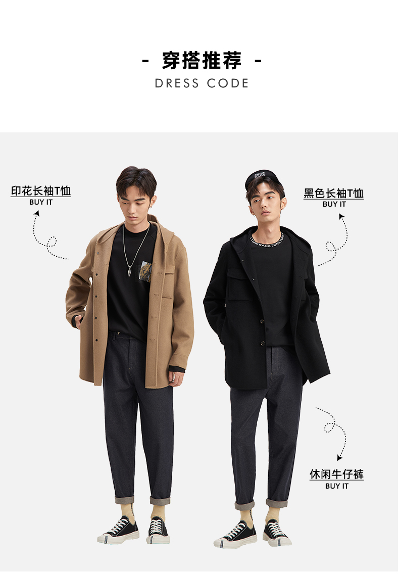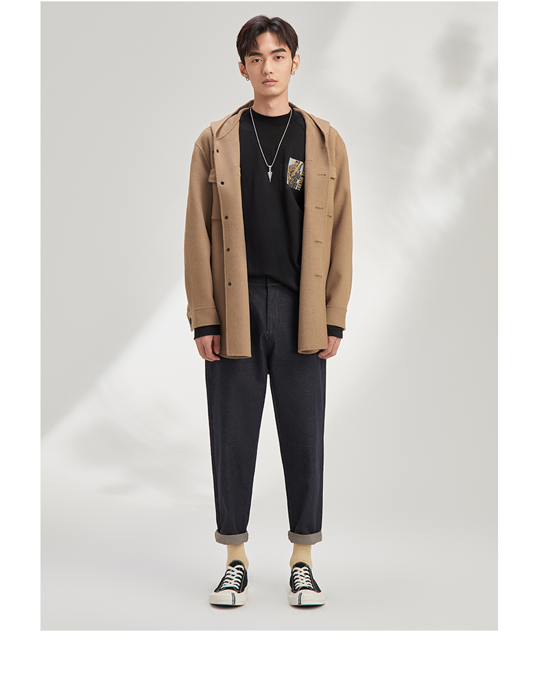 秋季呢子外套男宽松潮流帅气夹克男短款含78.8%羊毛毛呢大衣120328005