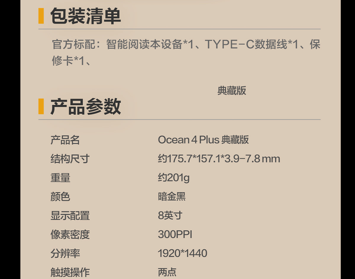 Ocean4 Plus典藏版 智能电子书阅读器墨水屏8英寸