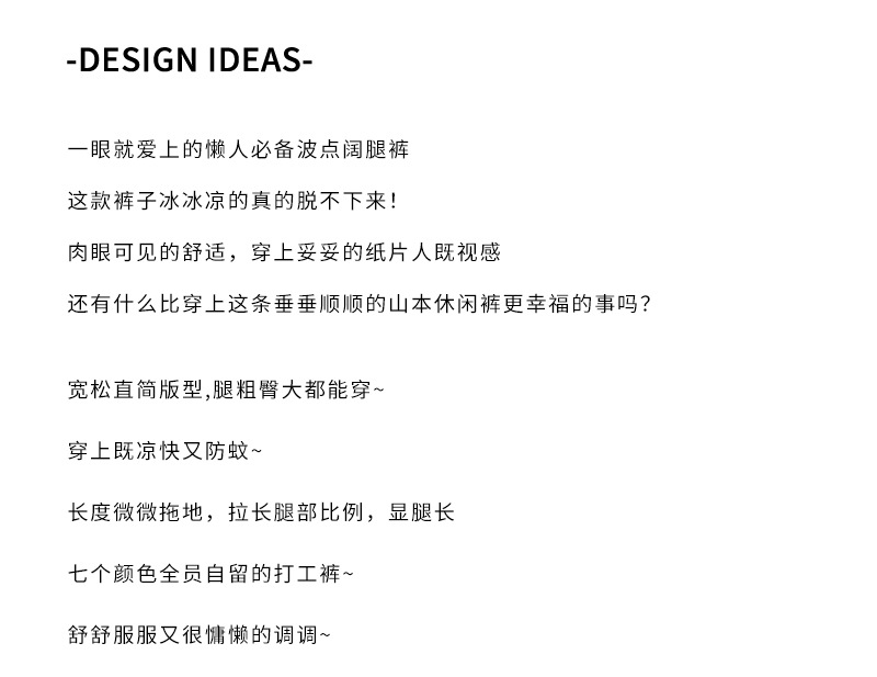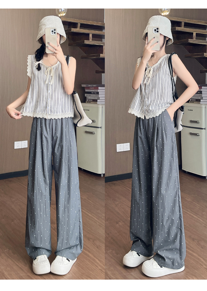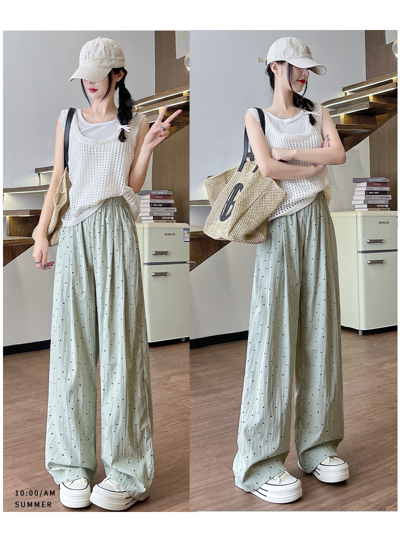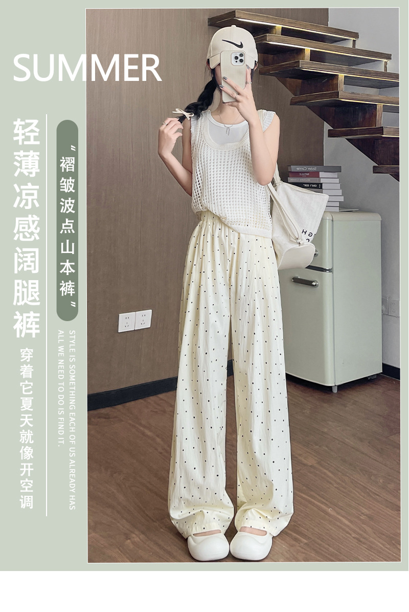 慵懒波点山本裤 夏季高腰轻薄凉爽垂感窄版直筒休闲阔腿裤
