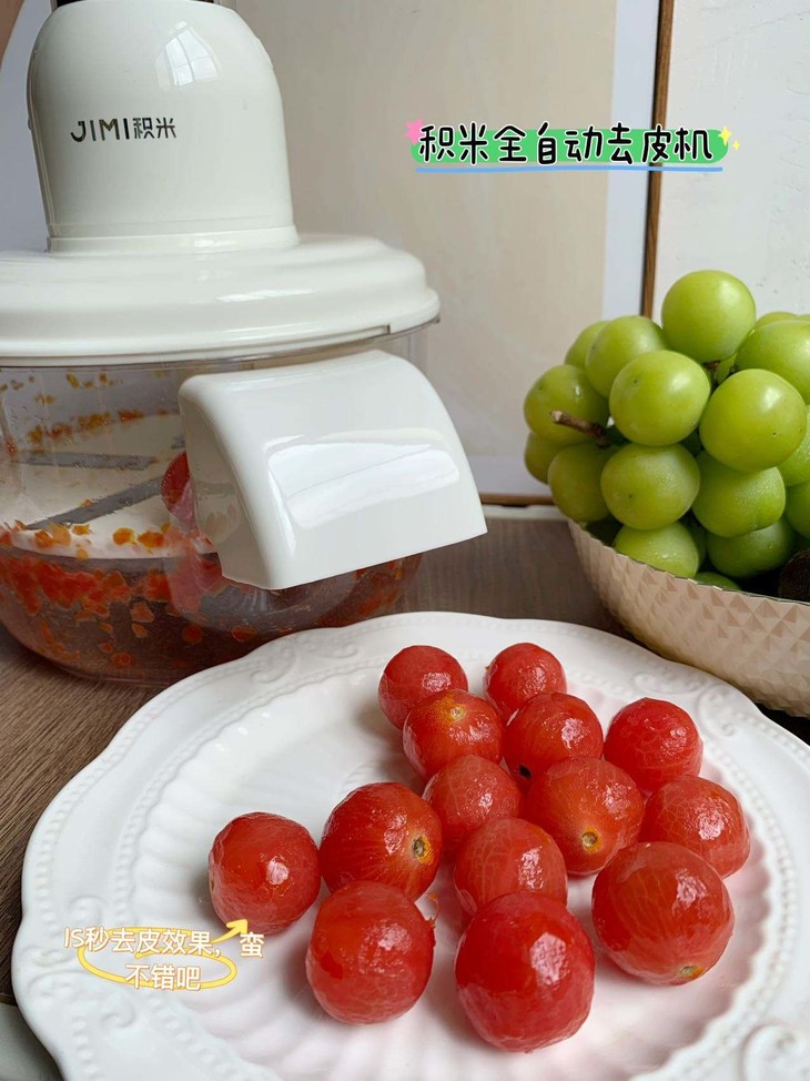 2、改善口感和质地(有些水果果皮不佳时,例如圣女果长成比较久皮偏硬了,去皮后果肉口感更细腻,较适合小孩和老人)