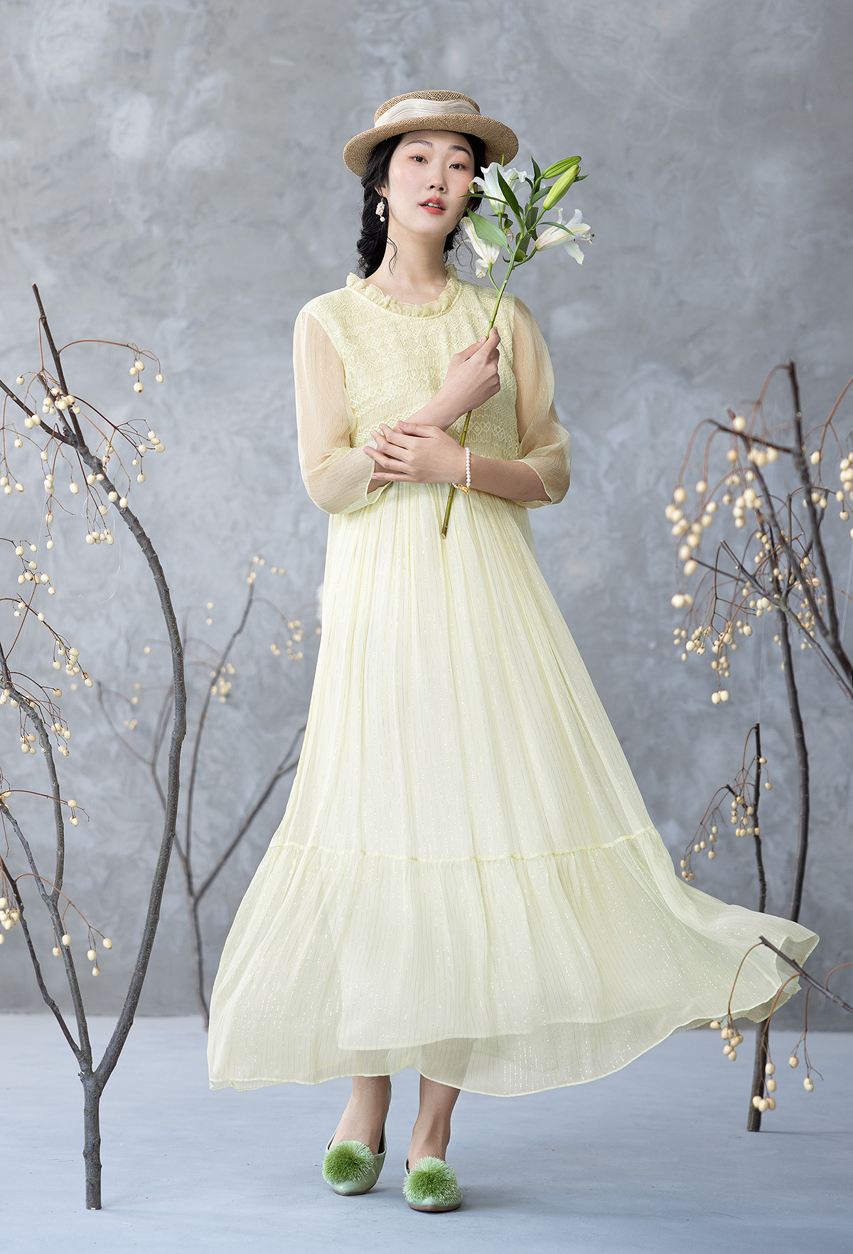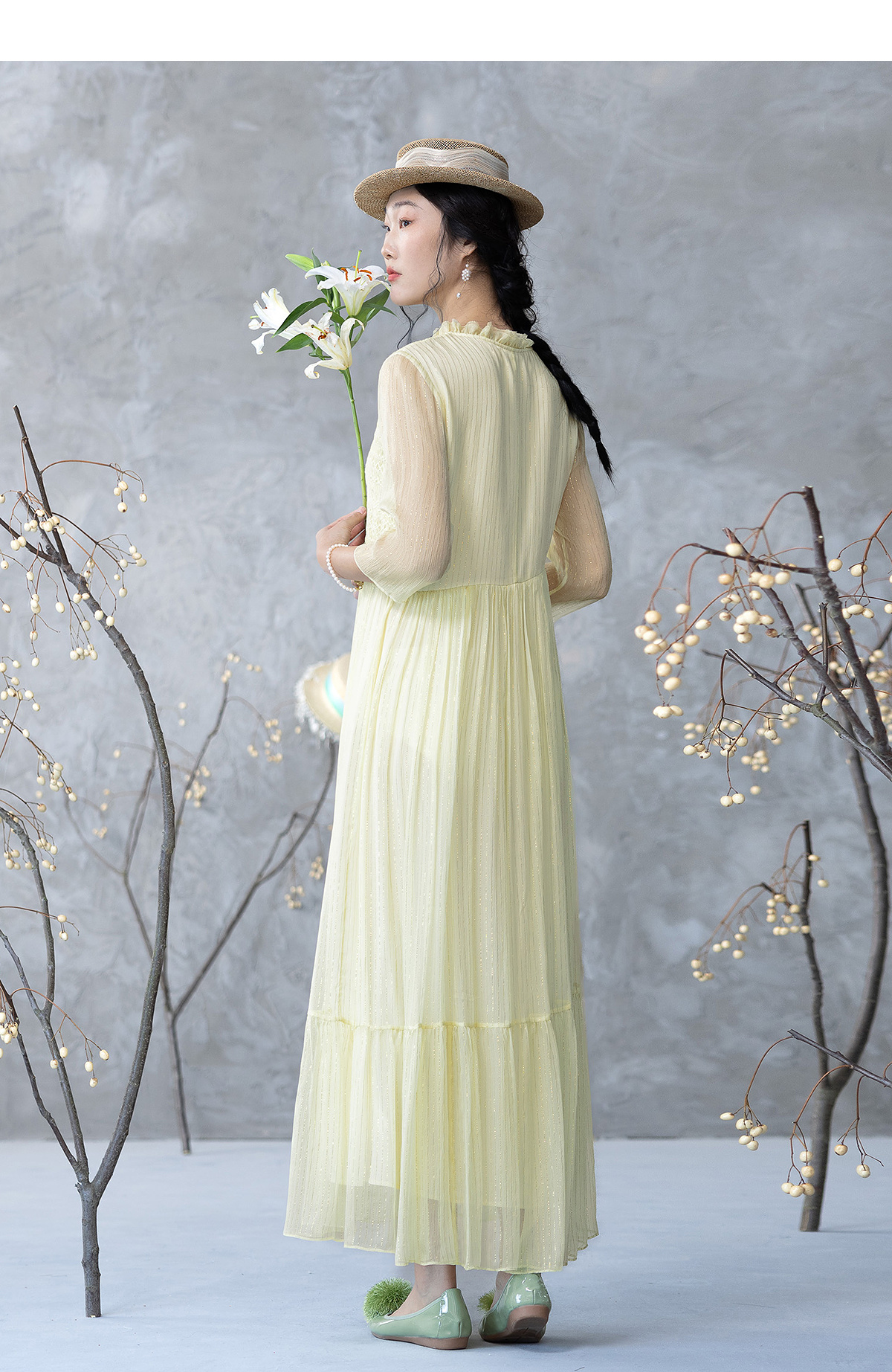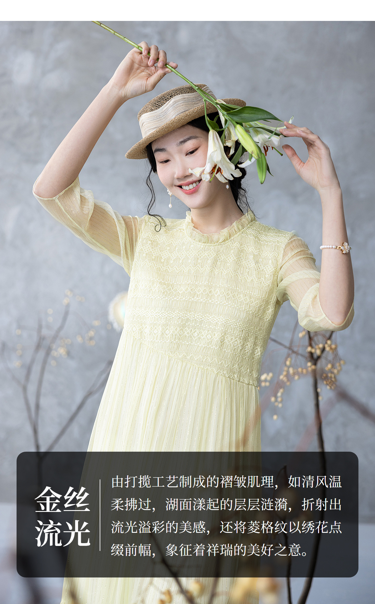 【林栖设计小店】金丝顺纡绉真丝连衣裙优雅绣花肌理感2025夏季新品长裙女1952072