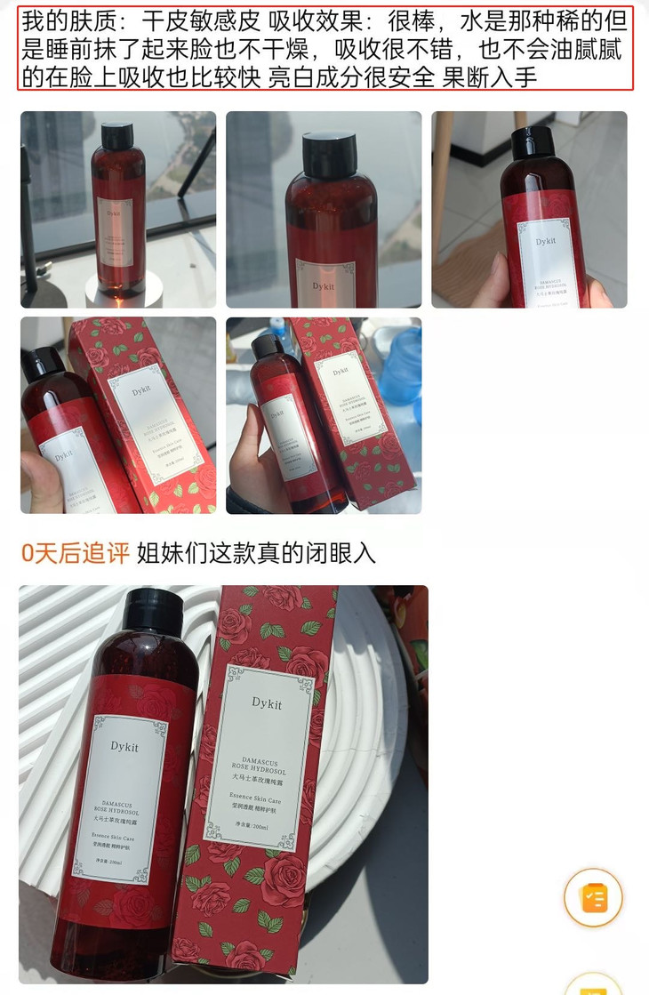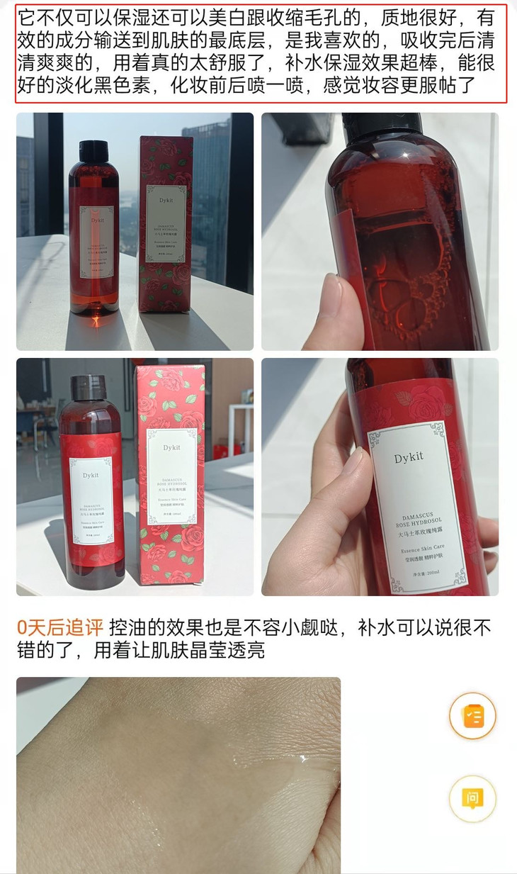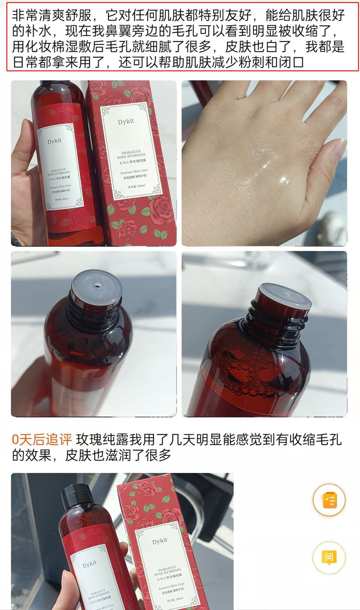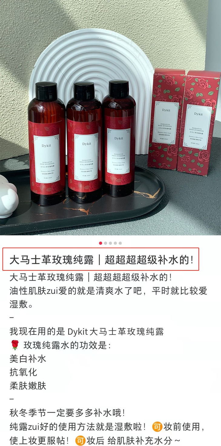 这个时候最好的补水神器当然就是纯露啦!! 自从用了这款Dykit-大马士革玫瑰纯露🌟仿佛打开了新世界的大门 肌肤爱喝的天然玫瑰水,去黄提亮,舒缓保湿一步到位💦
