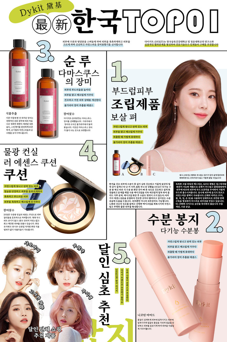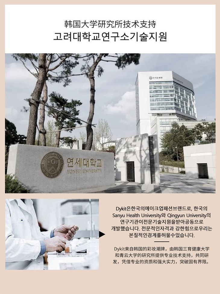 Dykit是源自韩国的美妆潮牌 背靠着韩国三育健康大学研究所和青云大学B&C研究所 专家顾问团队和专业技术的支持,针对亚洲肌肤,突破固有界限,研发出这款水光遮瑕精华气垫,为崇尚健康的爱美女性带来能养肤的底妆! 好的气垫不止能养肤还能演绎出摄人心魄的精致妆容,释放女性的美丽潜能,开创“养肤底妆”的新时代! 有凭有据,气垫品质值得信赖~