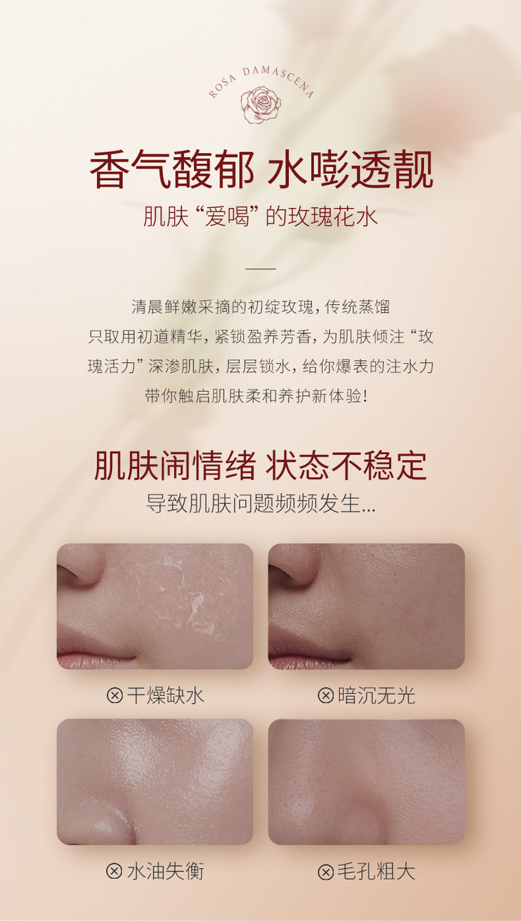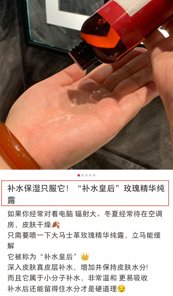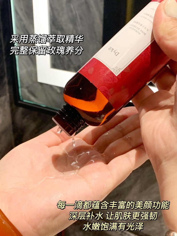 自身携带天然🌹原香 清新好闻,让肌肤更接近自然 透明凝露质地,每一滴都凝聚着大马士革玫瑰精华💦 富含植物小分子、矿物质元素等成分 堪称“护肤圣品”🤩 补水保湿,咱就是只爱玫瑰纯露
