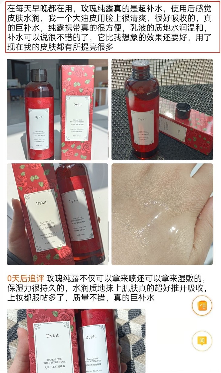 不含一滴水的-Dykit大马士革玫瑰纯露