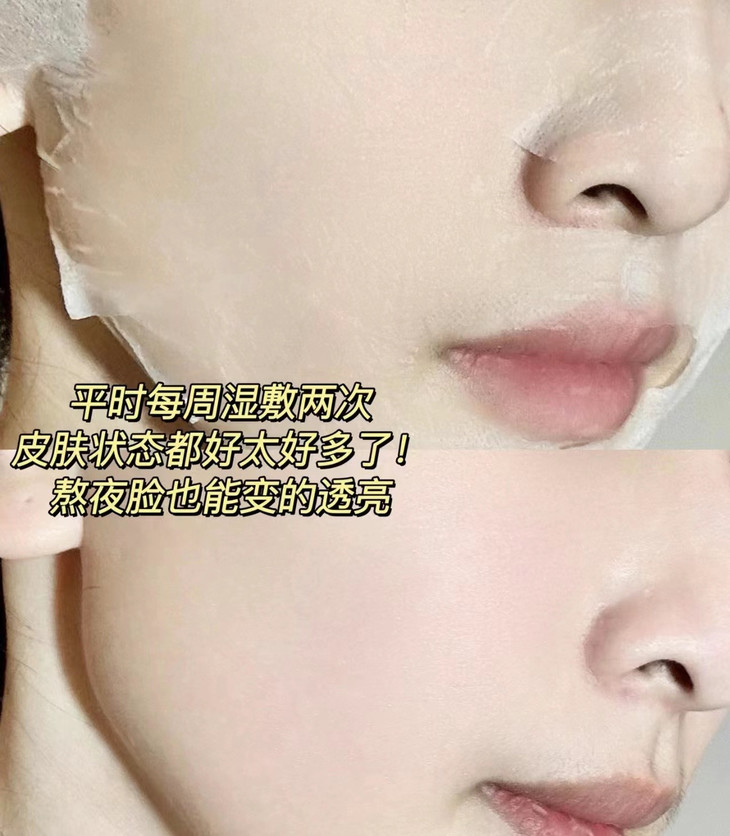 用它湿敷了一阵子,真的给我狠狠惊艳住了 脸上的黄气消失了,整个脸蛋都是亮出来的光泽感✨ 肤色也均匀了很多,气色都是粉嫩粉嫩的 摸起来还水嫩Q弹,嫩乎乎的~
