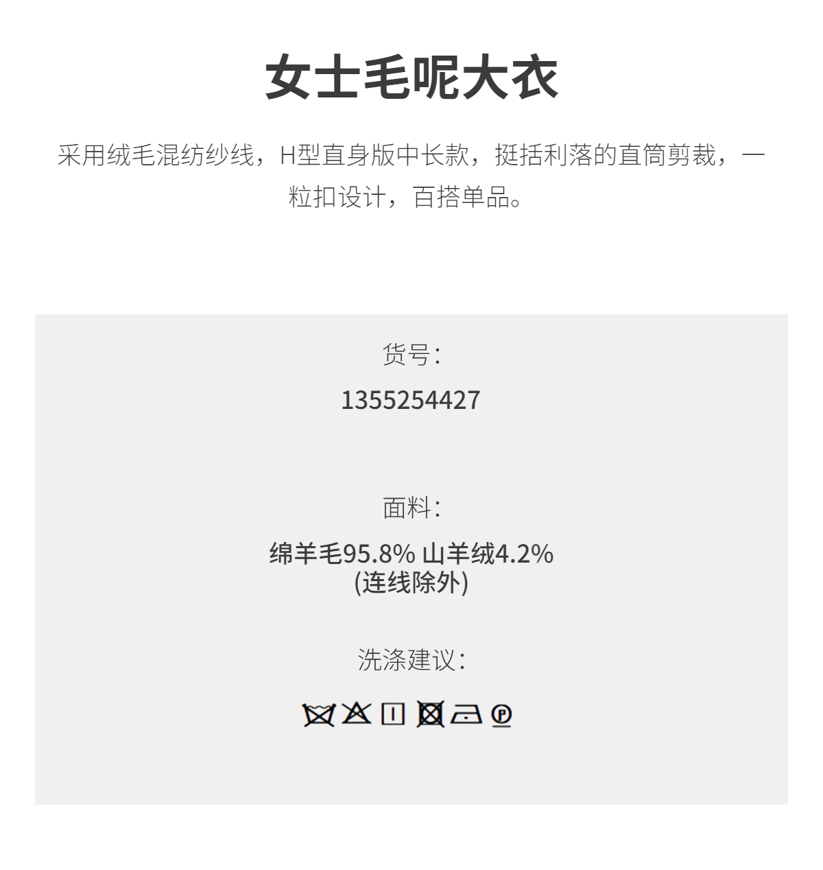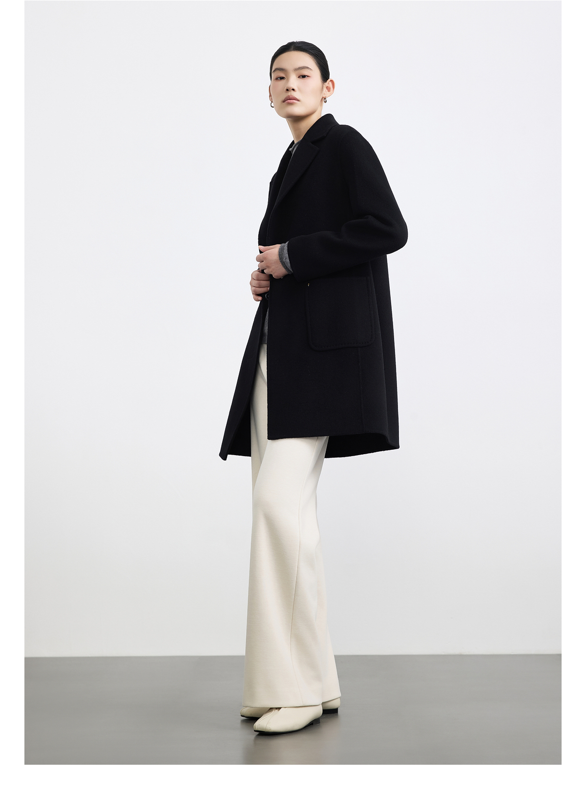 商场同款PURE TOUCH女装25秋冬新款绒毛混纺毛呢大衣一粒扣外套