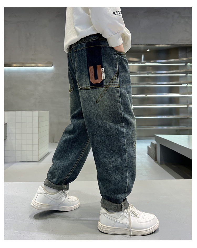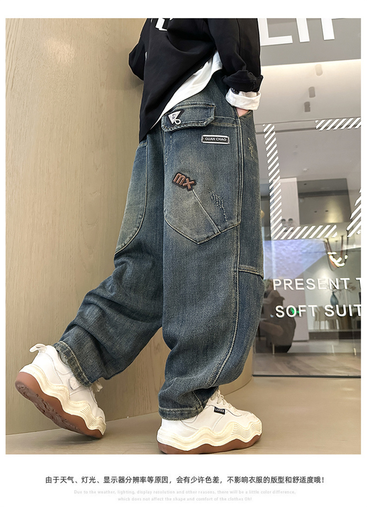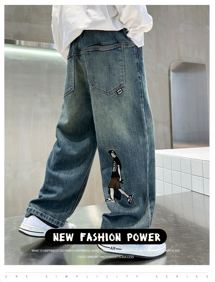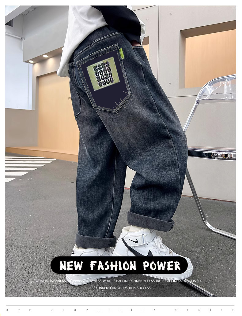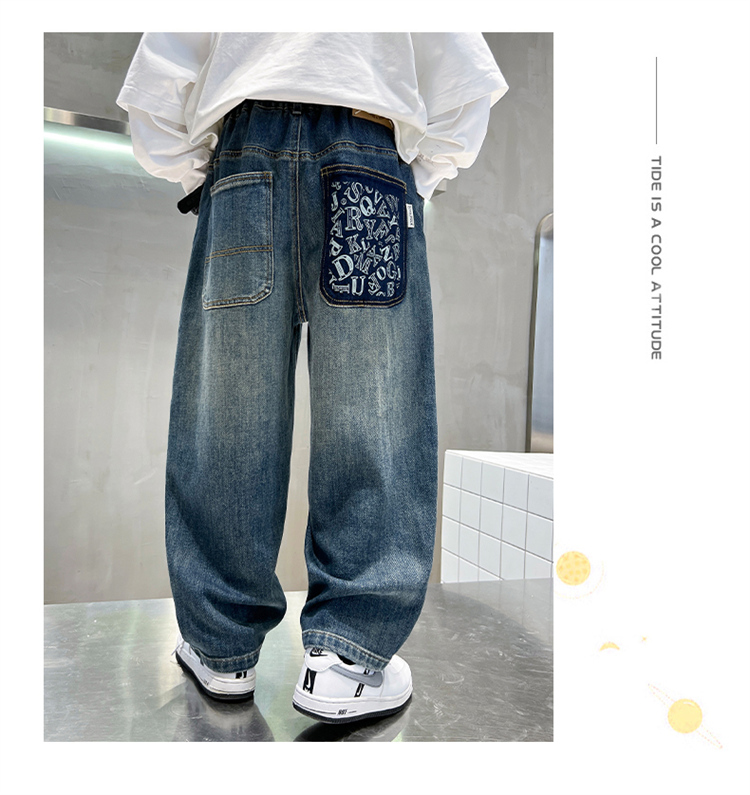 男童牛仔裤秋季2025新款儿童帅气中大童春秋款宽松百搭直筒长裤潮