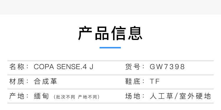 ADIDAS/阿迪达斯COPA SENSE.4 TF碎钉儿童款入门级足球鞋男GW7398