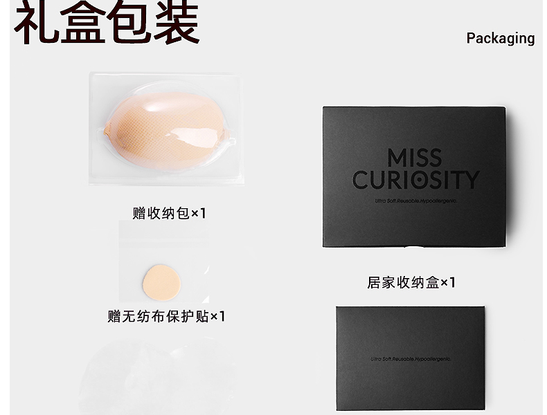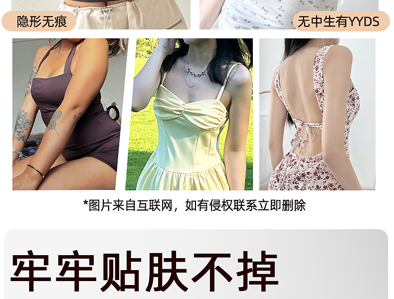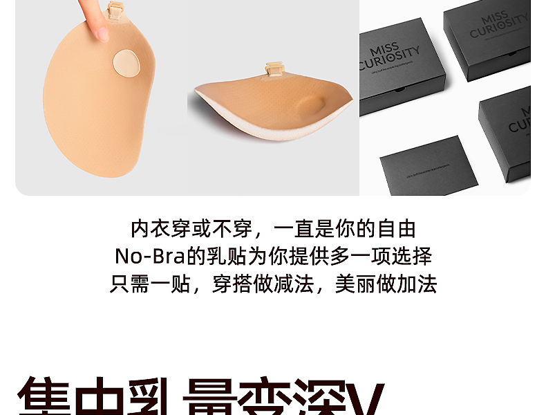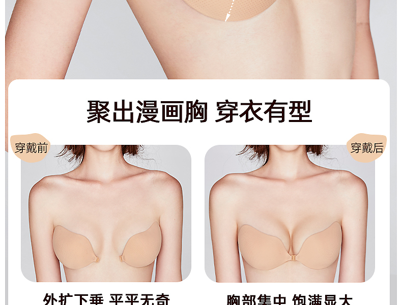 好奇蜜斯硅胶防凸点小胸聚拢胸贴女隐形性感乳贴婚纱上托夏薄显大 肤感青芒果乳贴