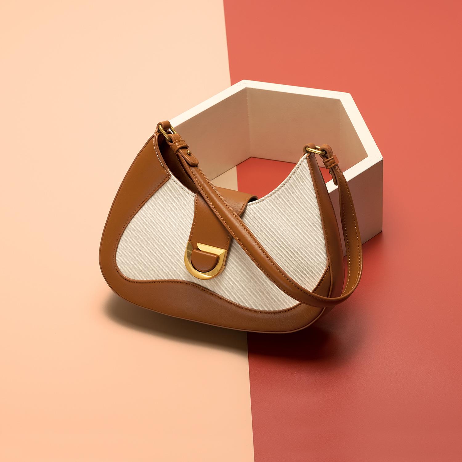 跨境撞色腋下包女百搭单肩斜挎通勤包夏季新款简约法棍包