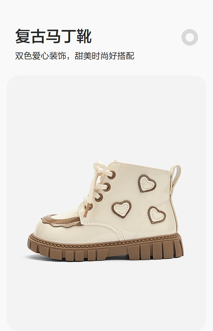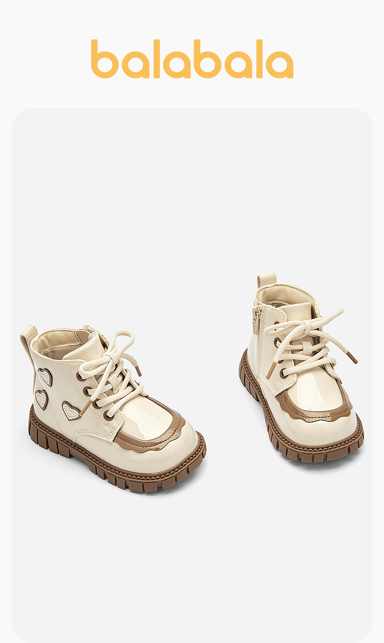 巴拉巴拉童鞋儿童马丁靴女童复古时尚靴子拉链款秋冬鞋子爱心甜美