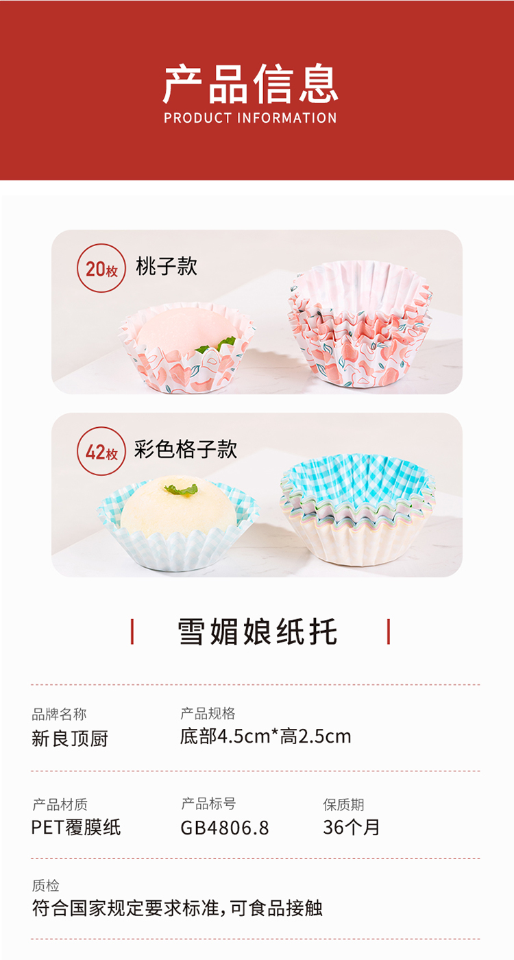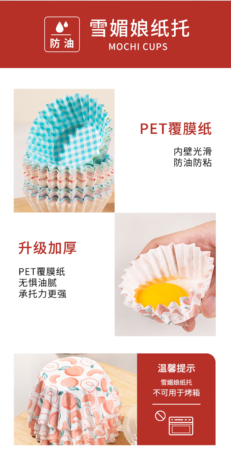 新良顶厨雪媚娘纸托模具防粘甜品纸杯蛋糕托烘焙用包装盒纸垫底托