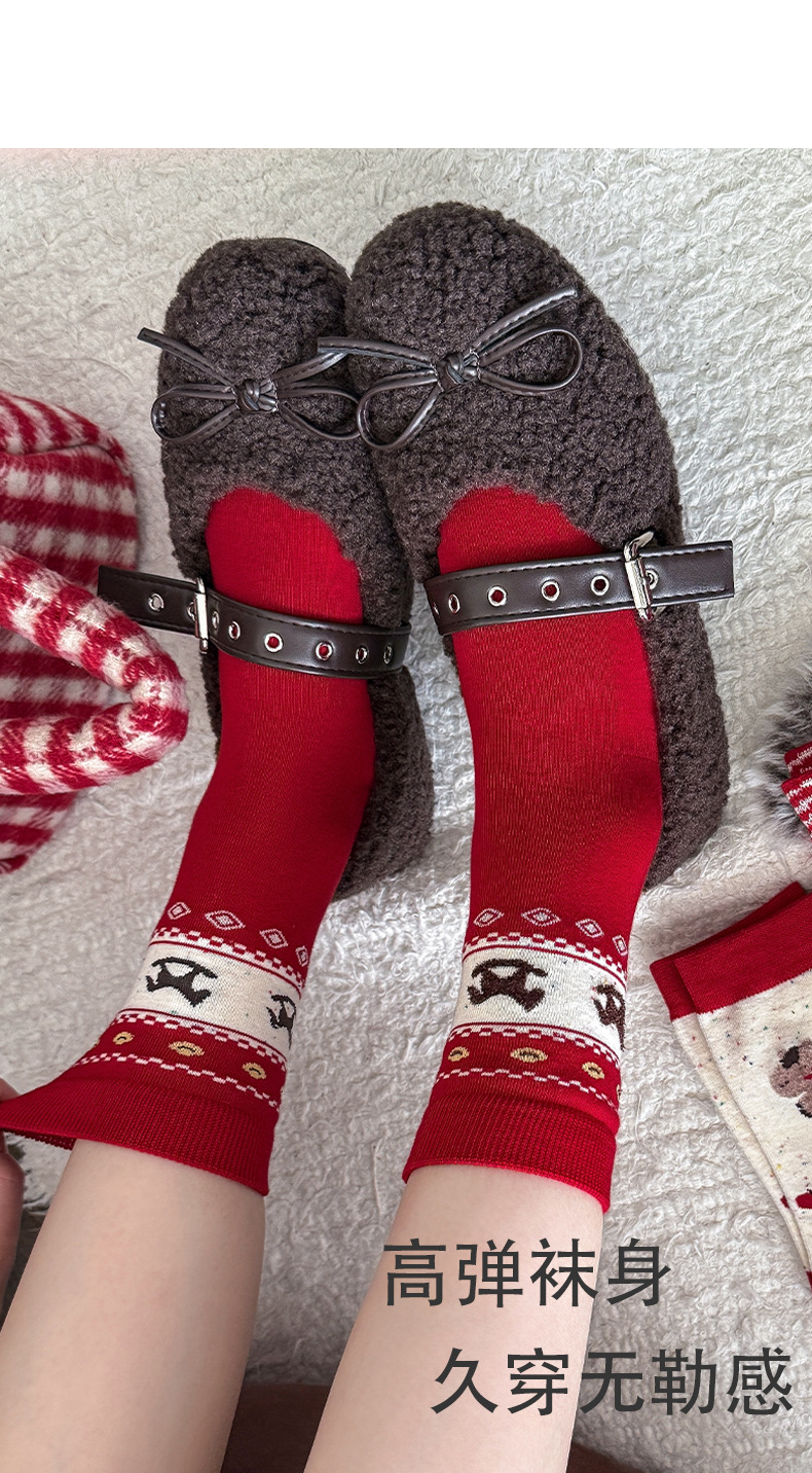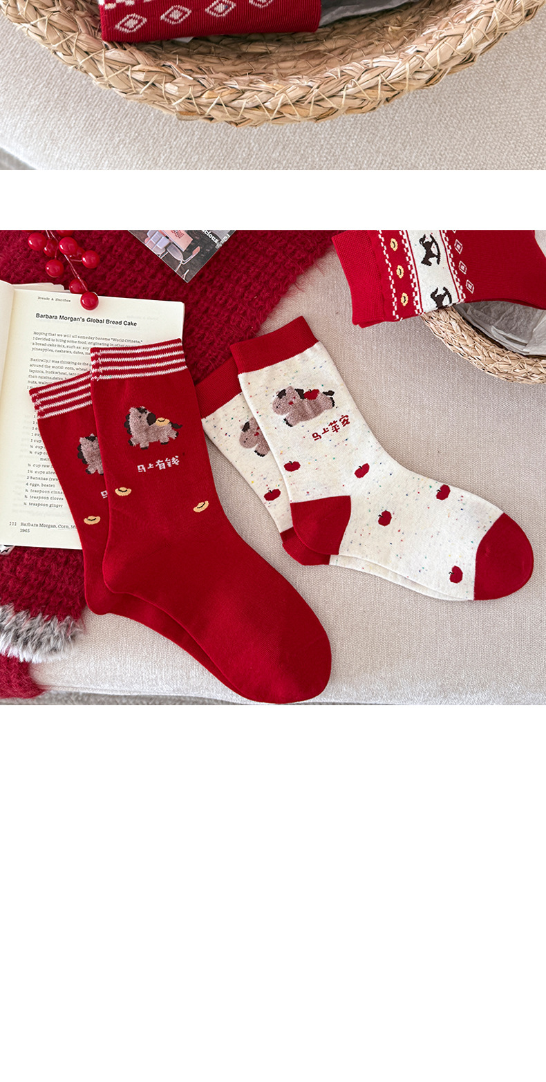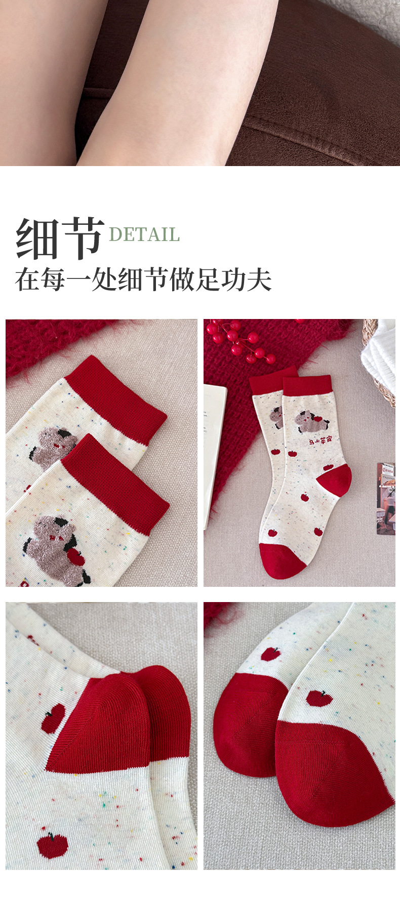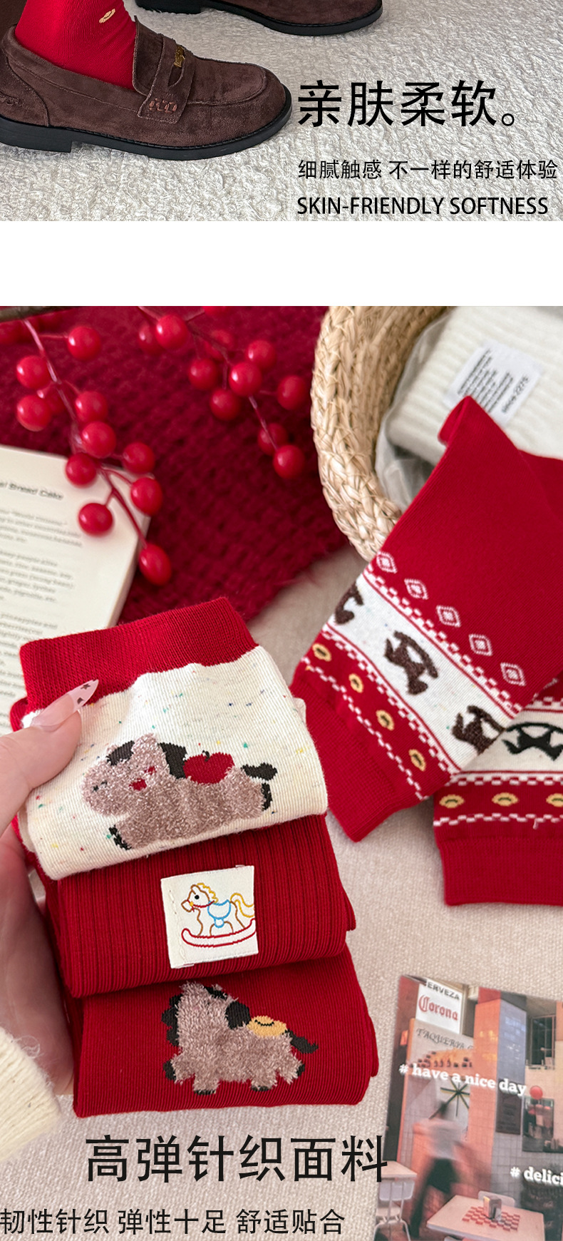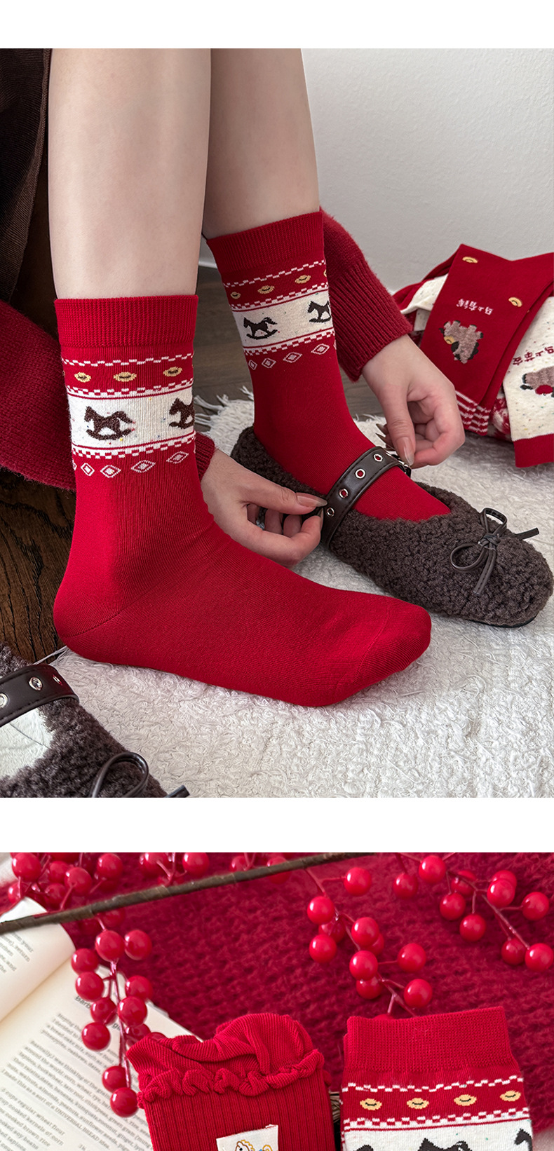 【YW】无忧购【鸿运当‘红’】4条装本命年红袜子女中筒袜秋冬季款棉袜ins潮马年新年礼物可爱长筒袜(截单后3-5天发货)