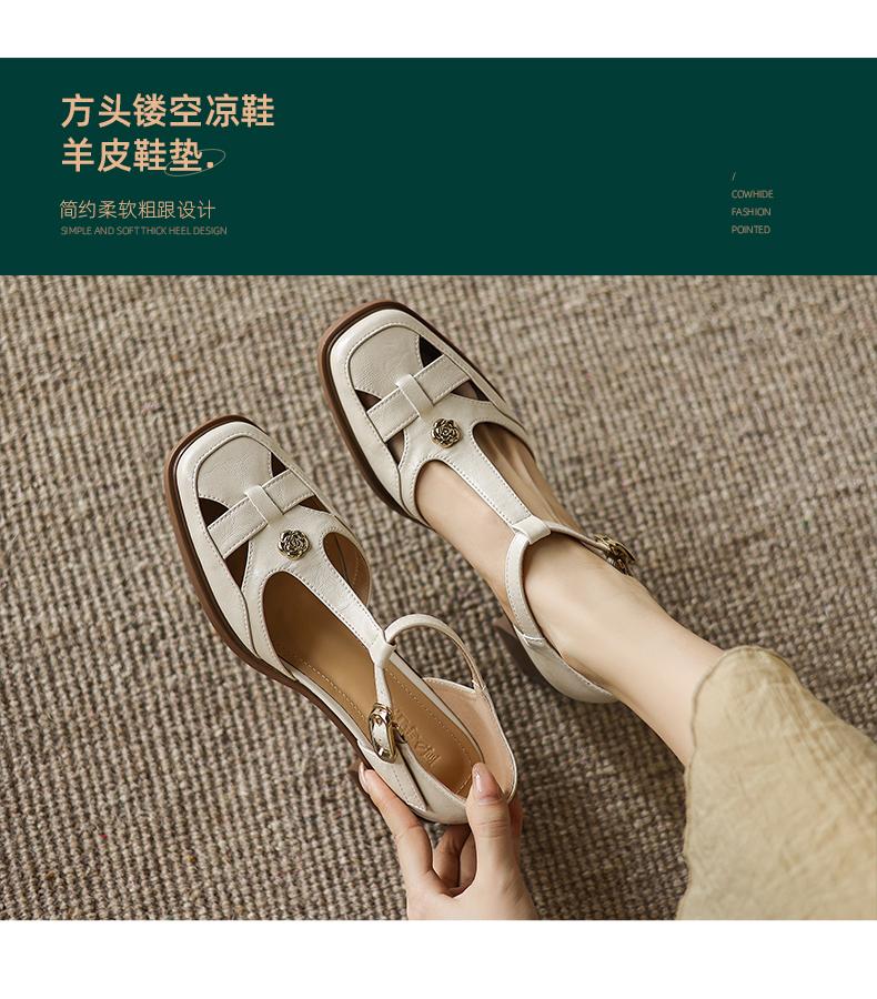 手工女鞋包头粗跟凉鞋女夏外穿软底软面真皮镂空罗马鞋子5CM 商品图4