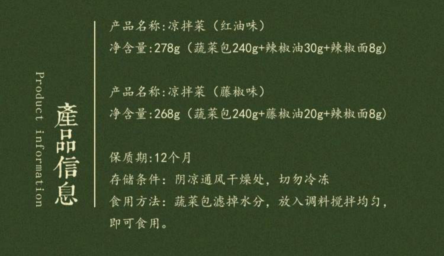 袁鲜 成都麻辣红油 口袋凉拌菜 278g/袋