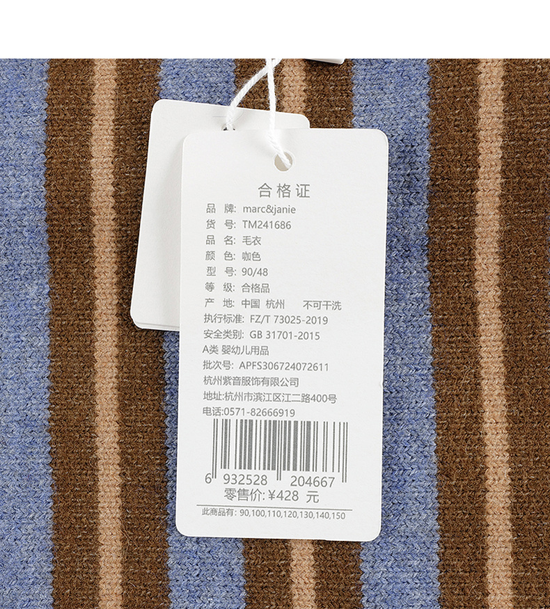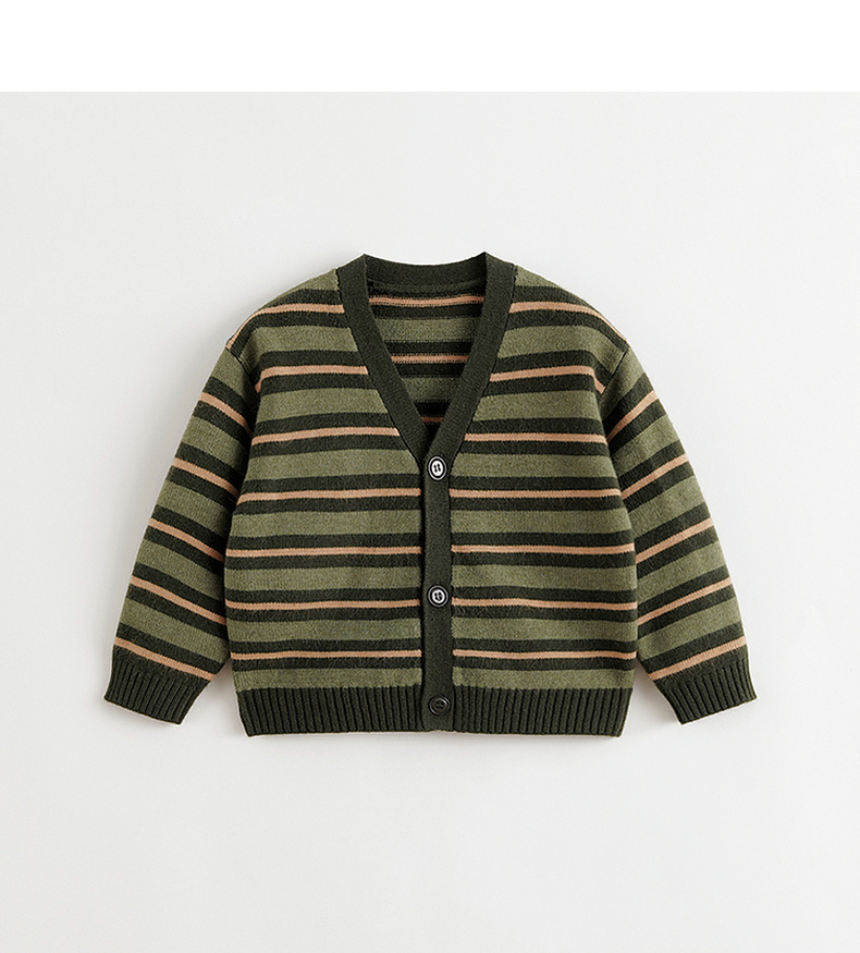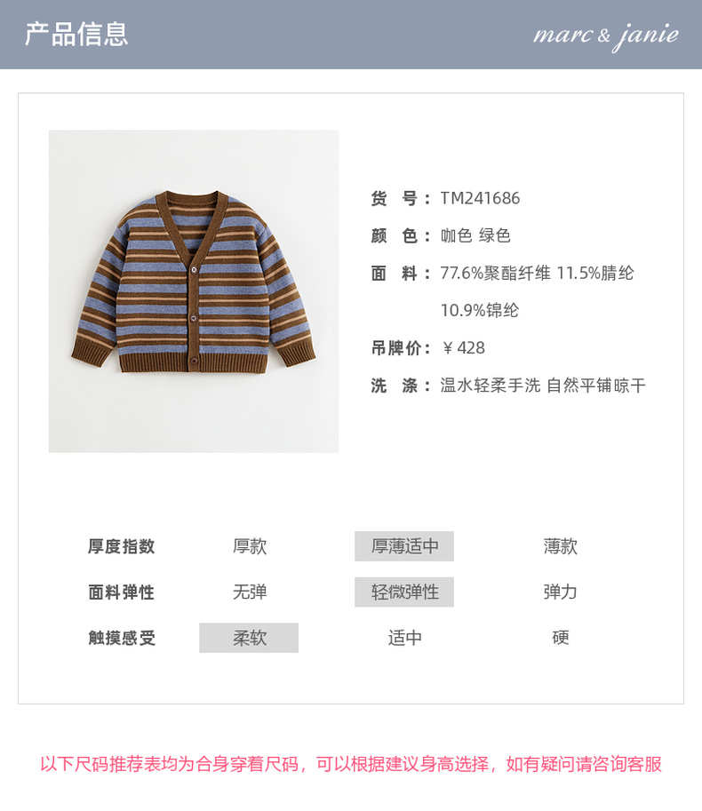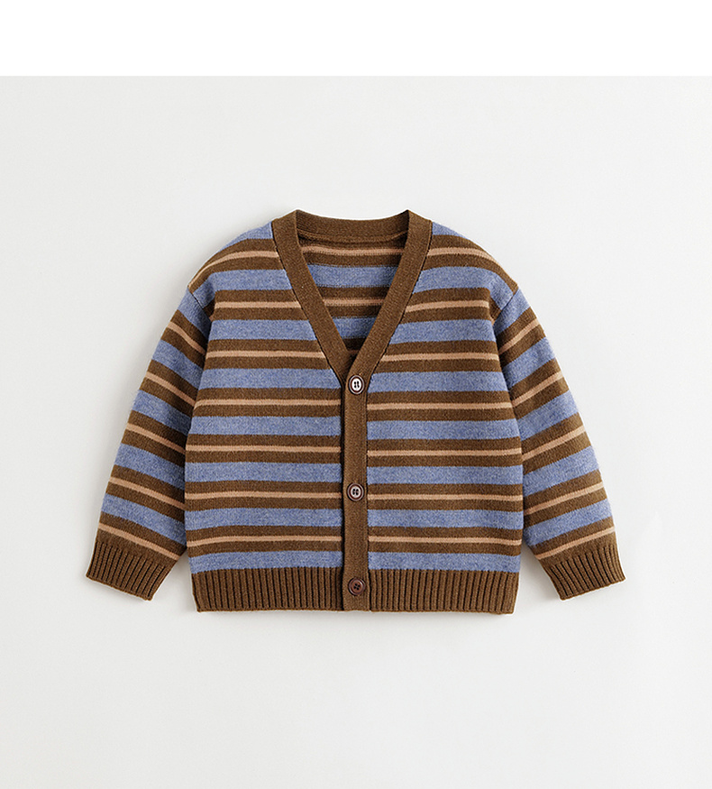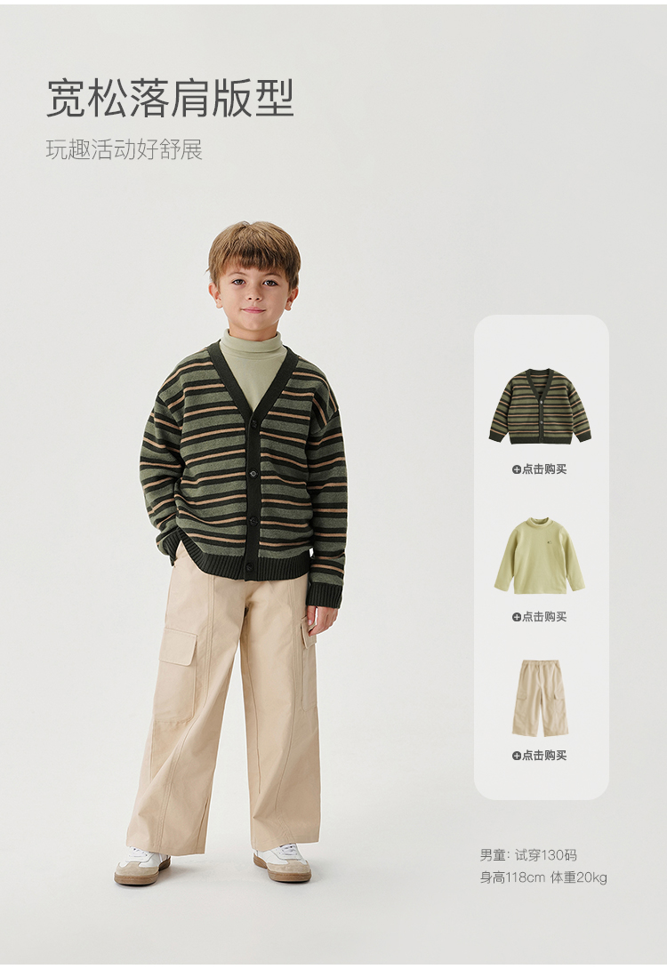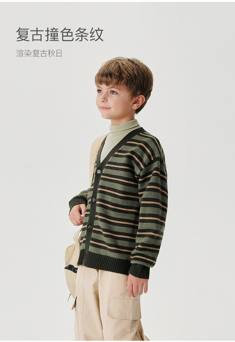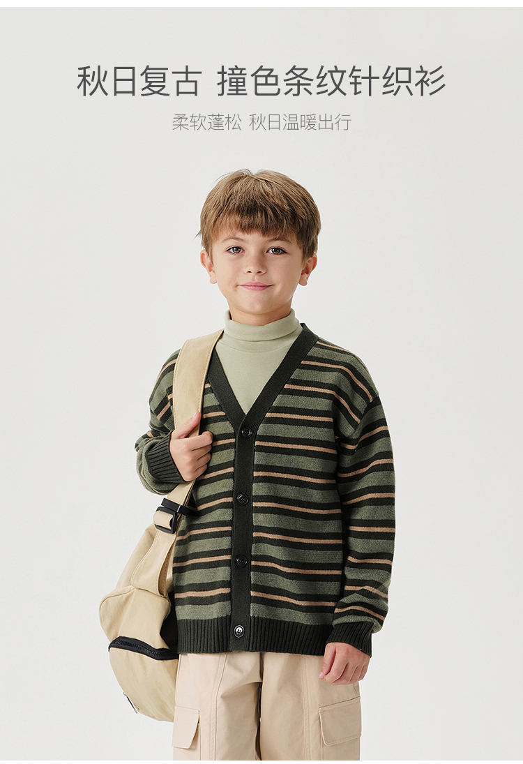 马克珍妮男童山系户外条纹针织开衫2024年秋冬新款241686