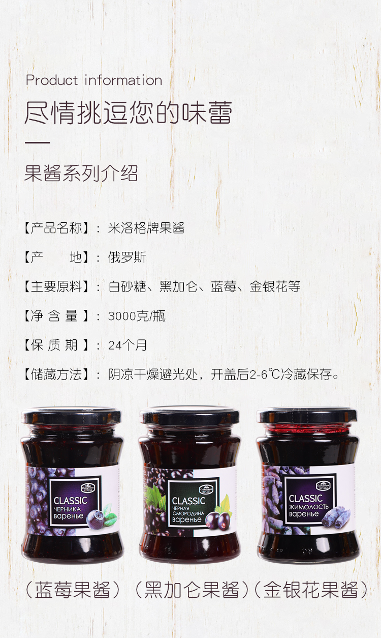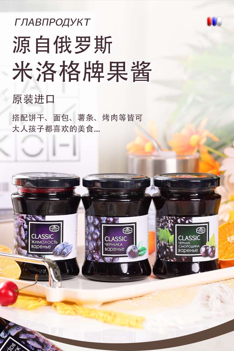 米洛格黑加仑草莓沙棘蓝莓覆盆子果酱300g