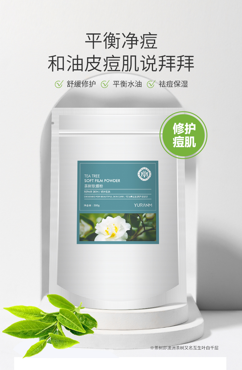 【69元3件、99元5件】茶树软膜粉面膜500g 祛痘祛粉刺闭口净痘修护平衡水油补水舒缓