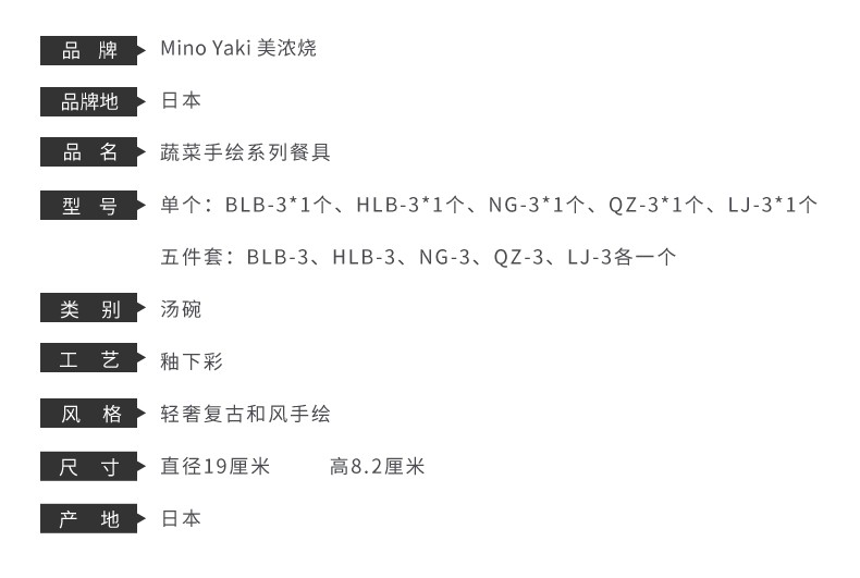 MINOYAKI/美浓烧 日本进口蔬菜系列手绘陶瓷汤碗JPY带授权招加盟代理