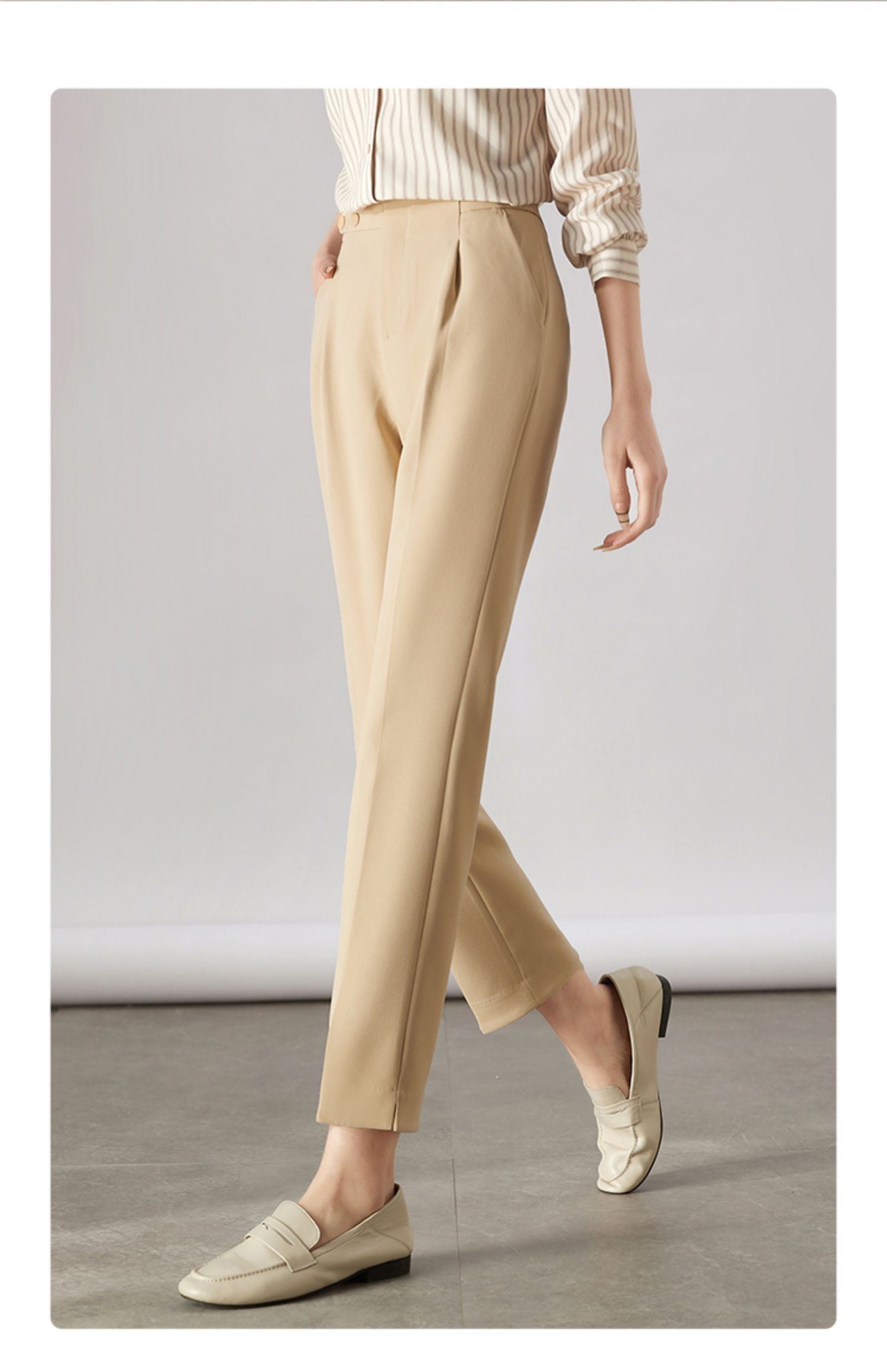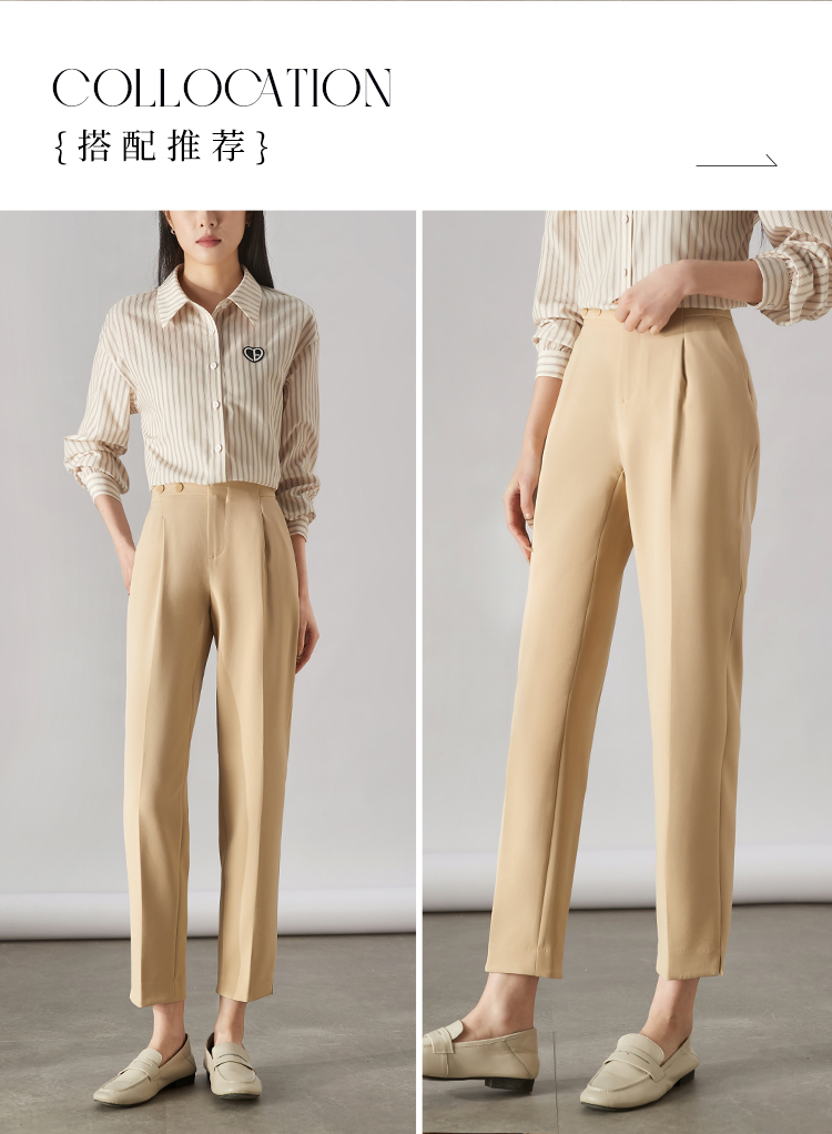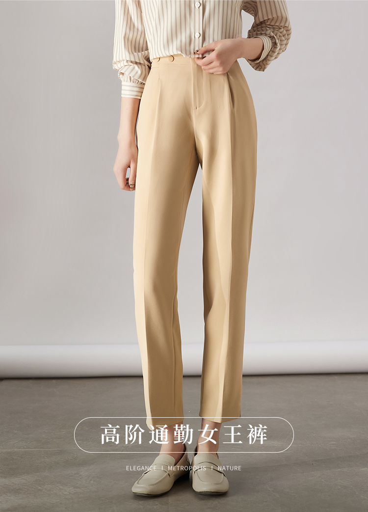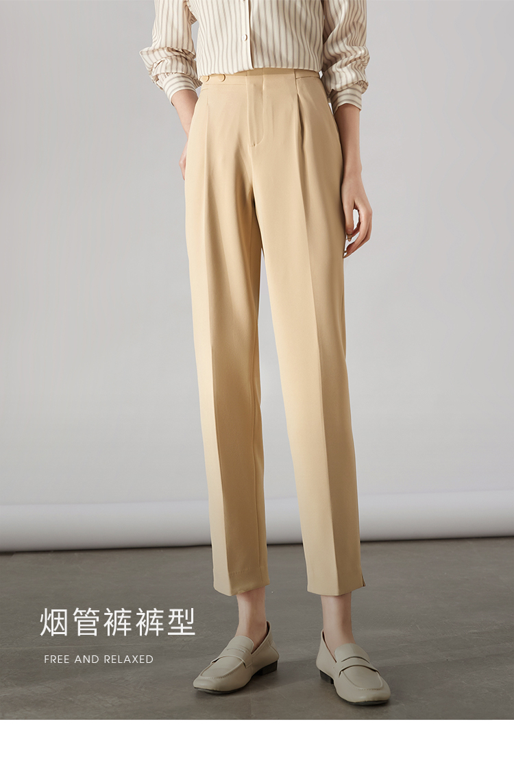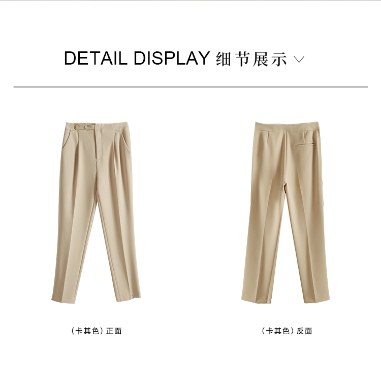 【129选3件,不退换】熙世界通勤卡其色休闲西裤女2025秋装新款高腰垂感九分直筒烟管裤