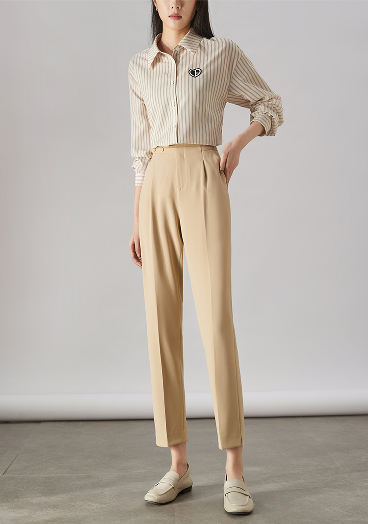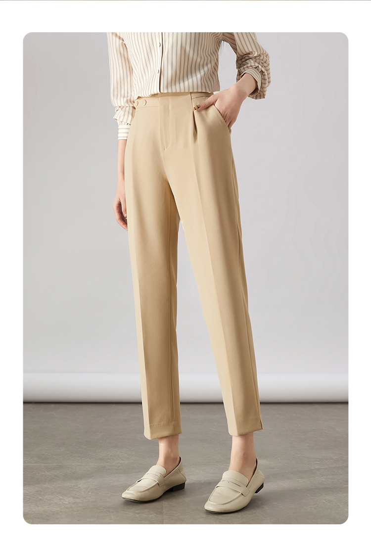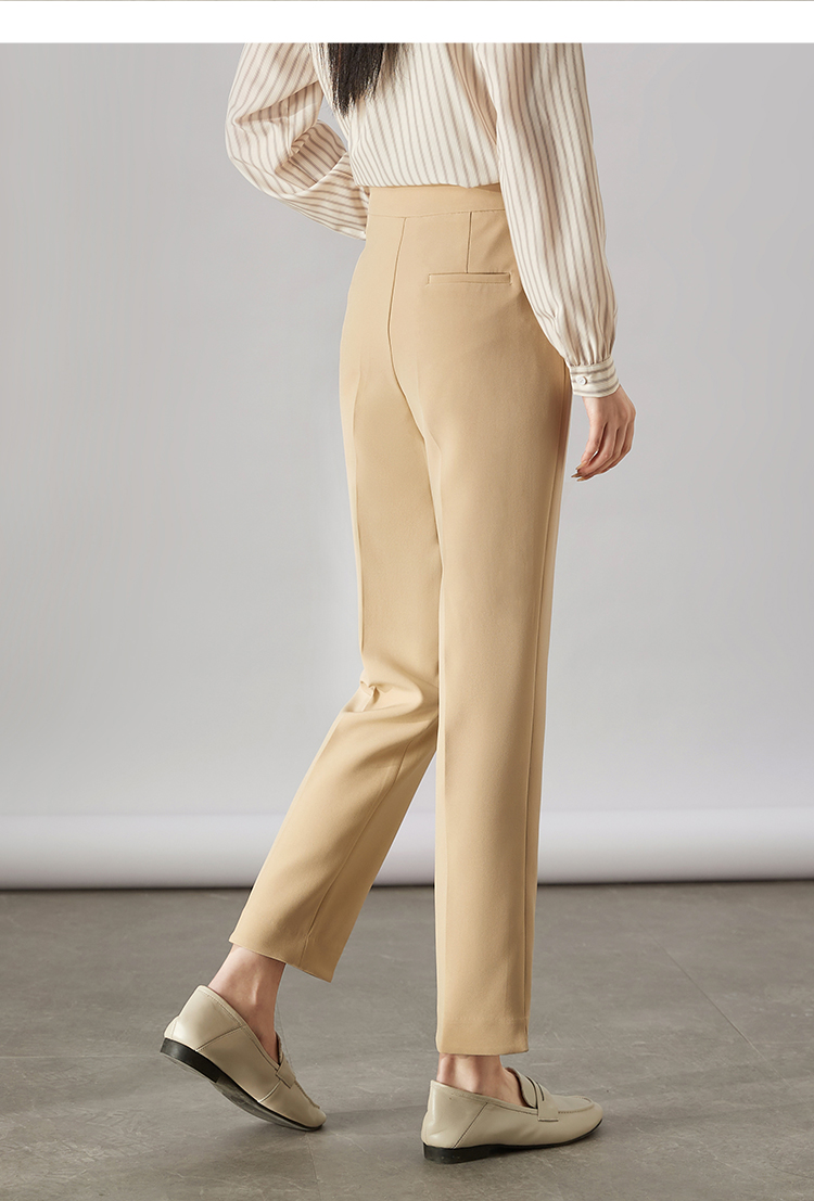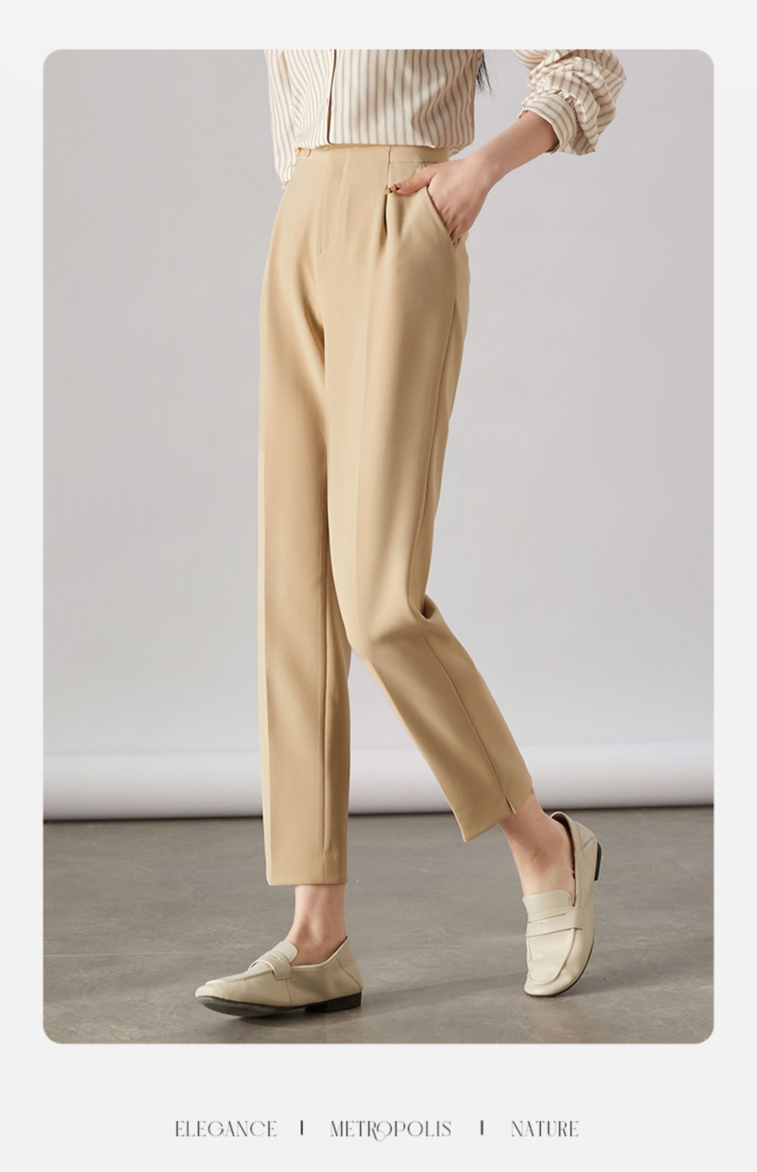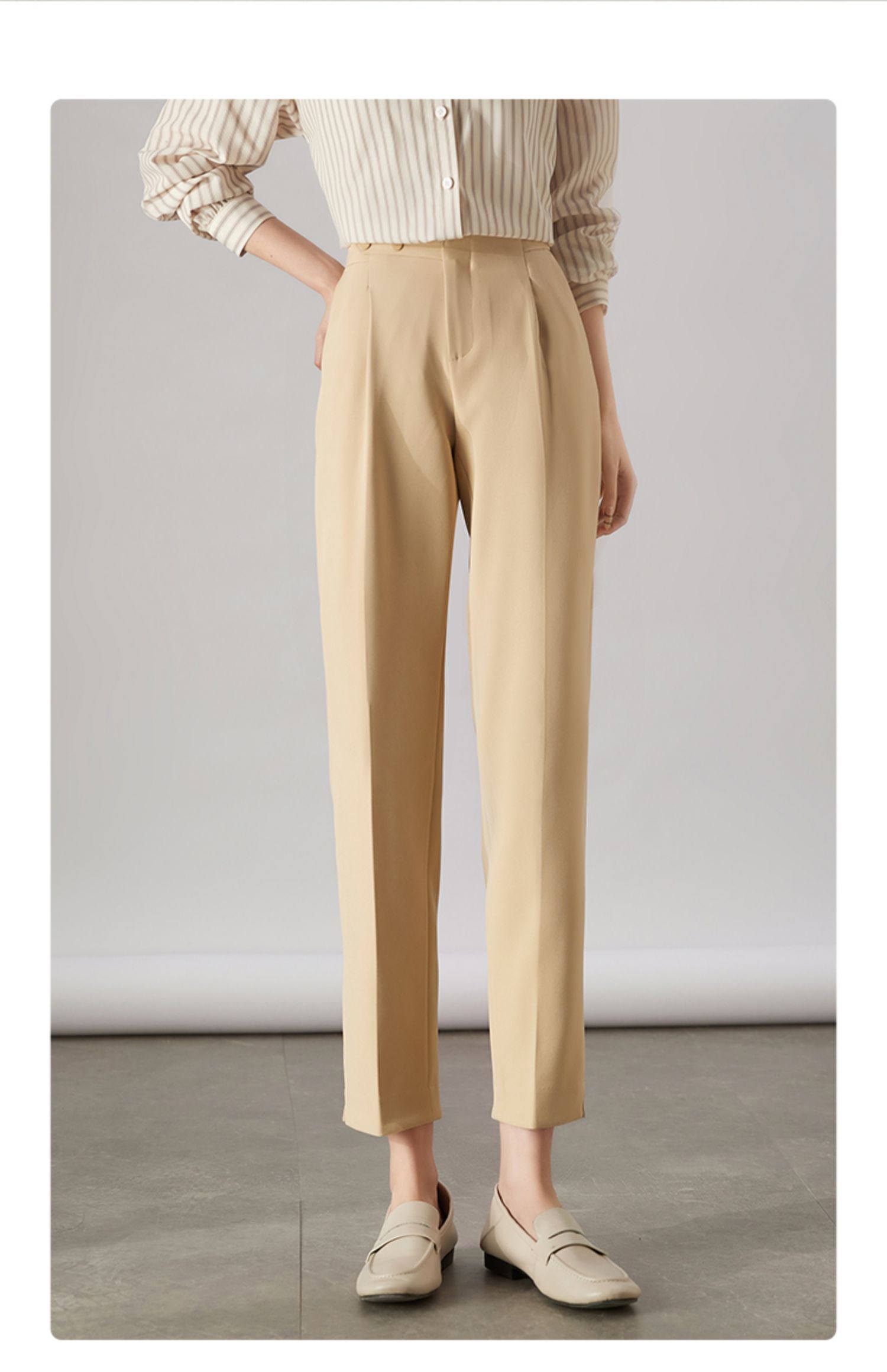 【129选3件,不退换】熙世界通勤卡其色休闲西裤女2025秋装新款高腰垂感九分直筒烟管裤
