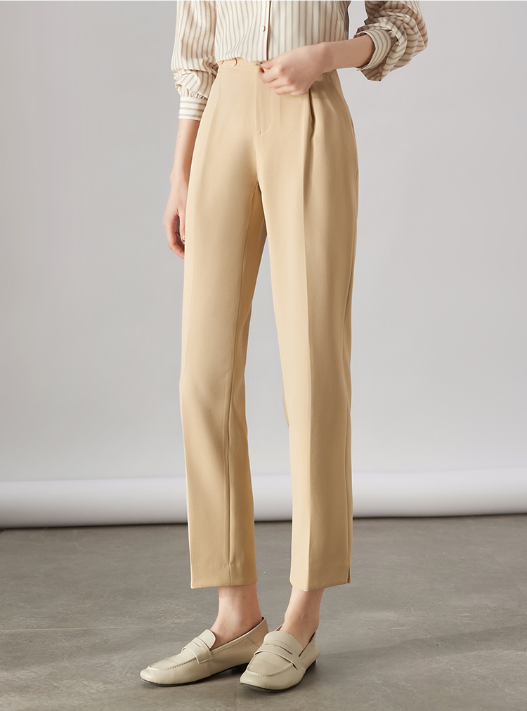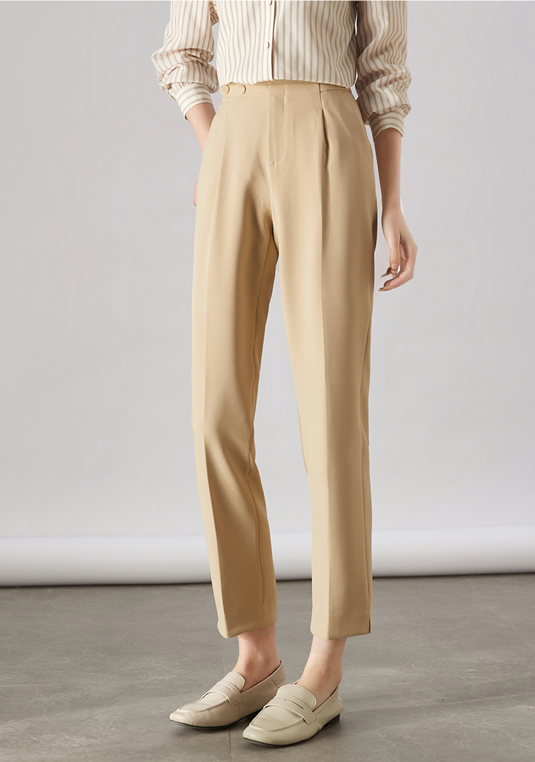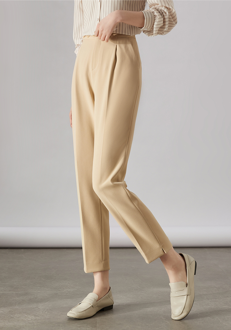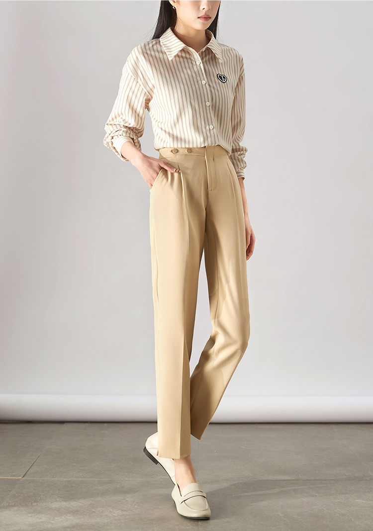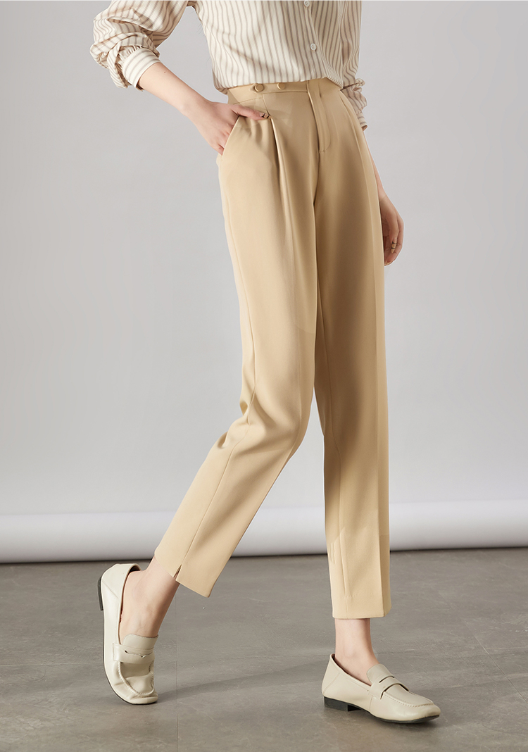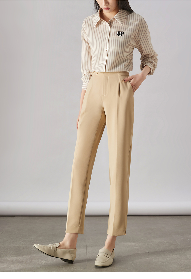 【129选3件,不退换】熙世界通勤卡其色休闲西裤女2025秋装新款高腰垂感九分直筒烟管裤