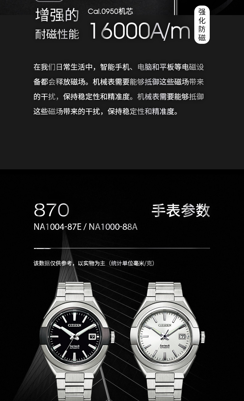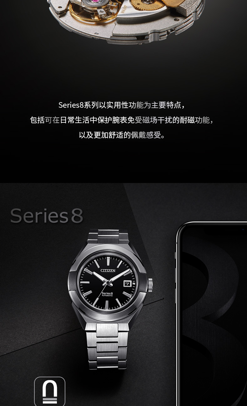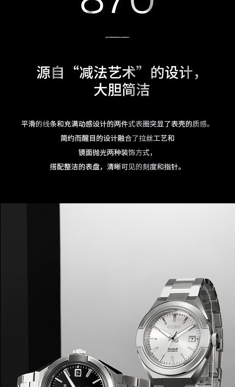 西铁城日本官方正品全新Series8系列商务休闲机械手表男NA1004-87E