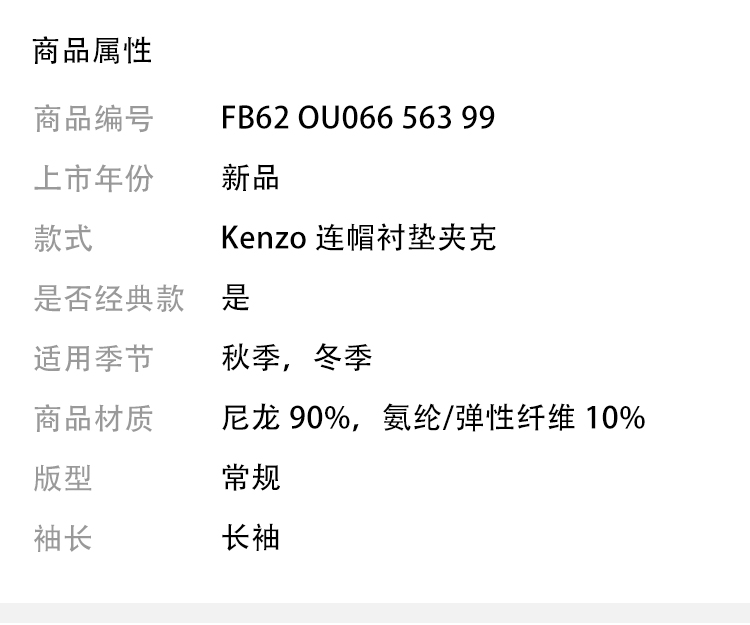KENZO 高田贤三 女士羽绒服 黑色 FB62 OU066 563 99