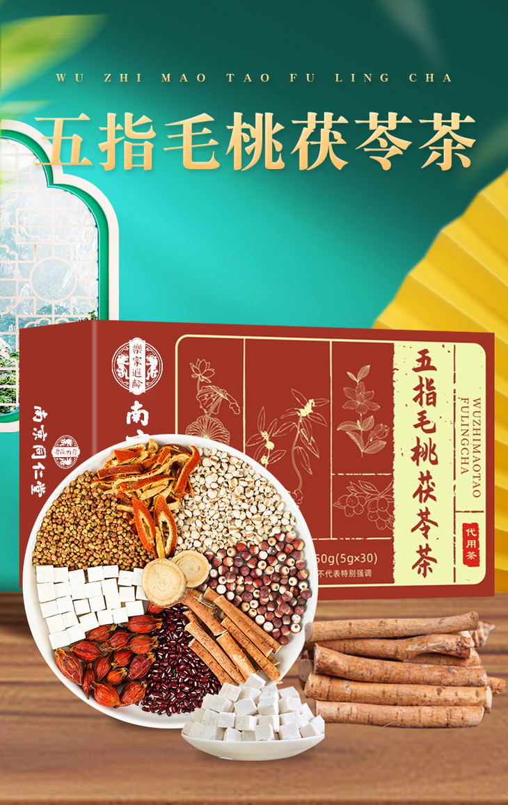 「买1送1!单盒30包」南京同仁堂五指毛桃茯苓茶薏苡仁150g养生茶袋泡茶饮