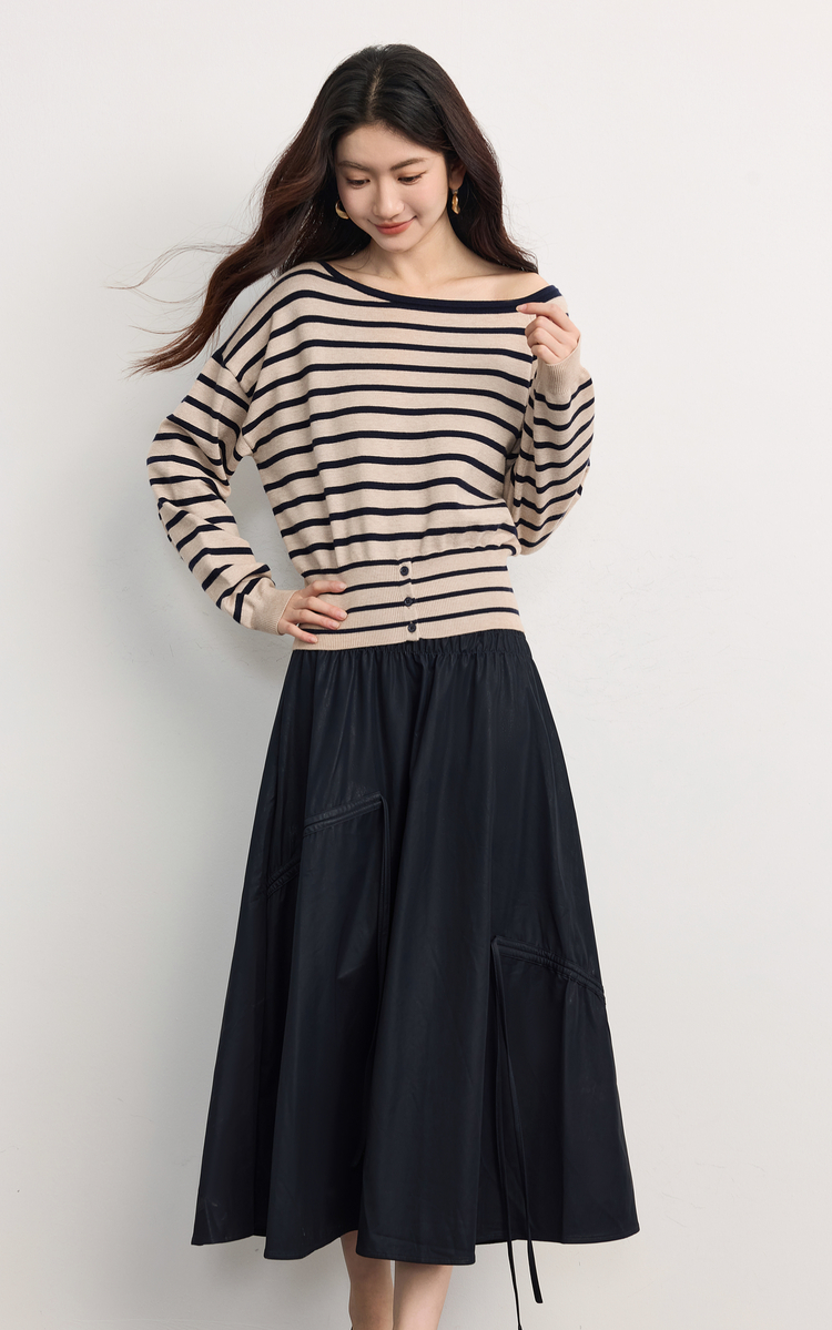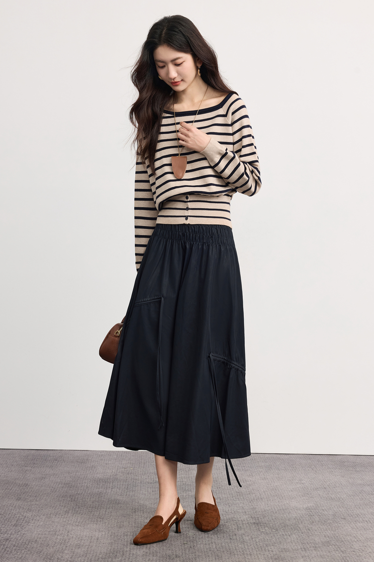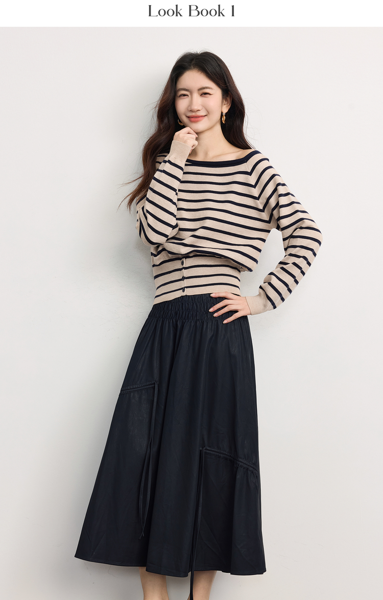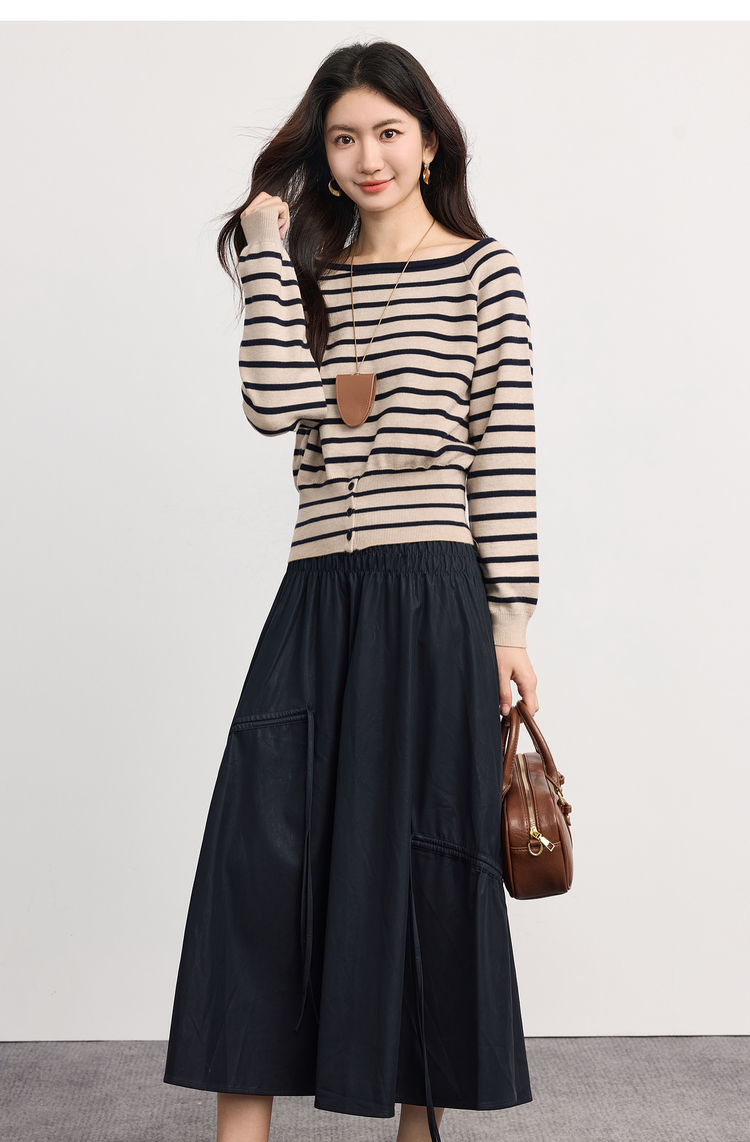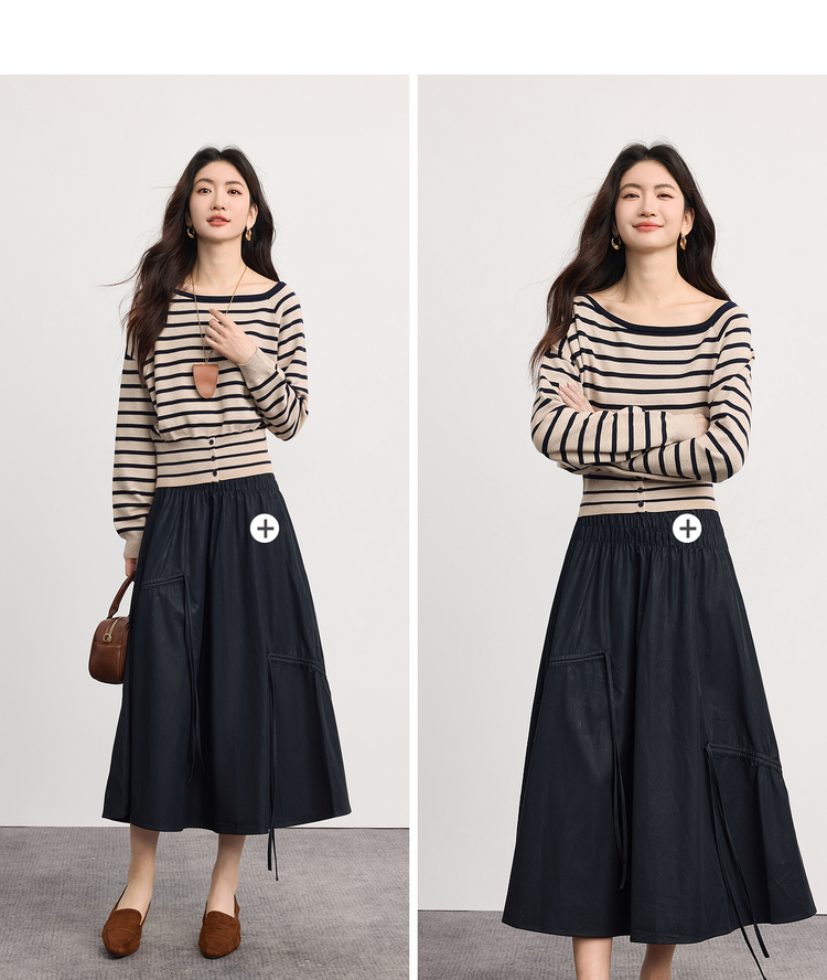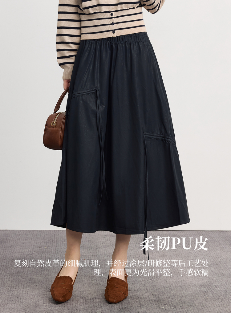 【10/1新品】熙世界不规则抽绳a字皮裙半身裙女2025秋冬新款复古中长pu皮伞裙