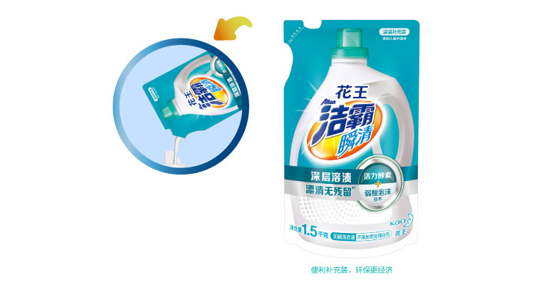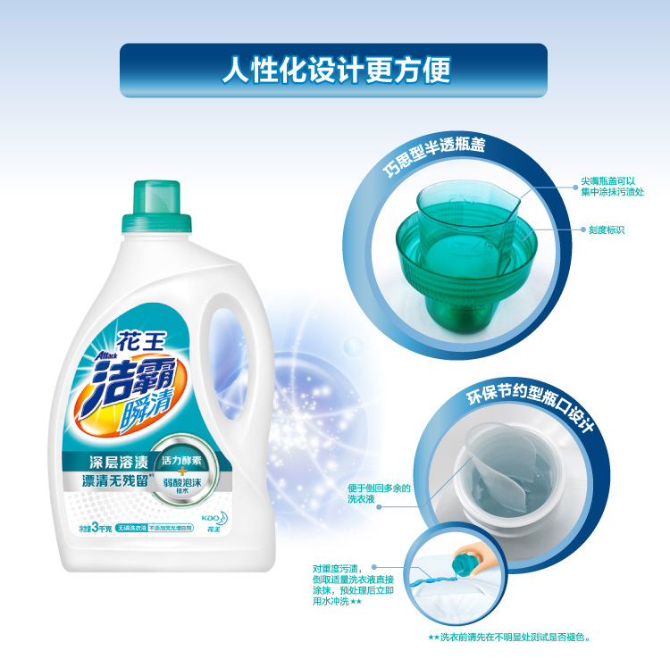 花王洁霸瞬清无磷洗衣液3千克 307625 2千克 1瓶JPY带授权招加盟代理