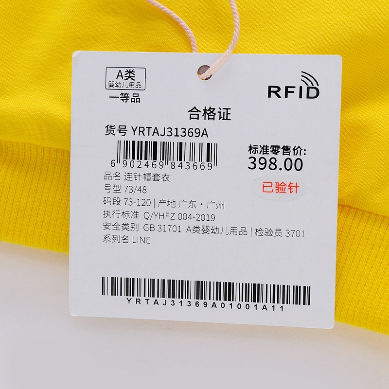 英氏-童衣类(秋)E1连针帽套衣沙砾黄100CM