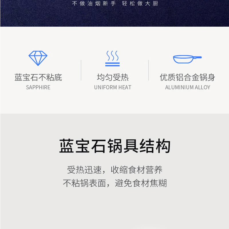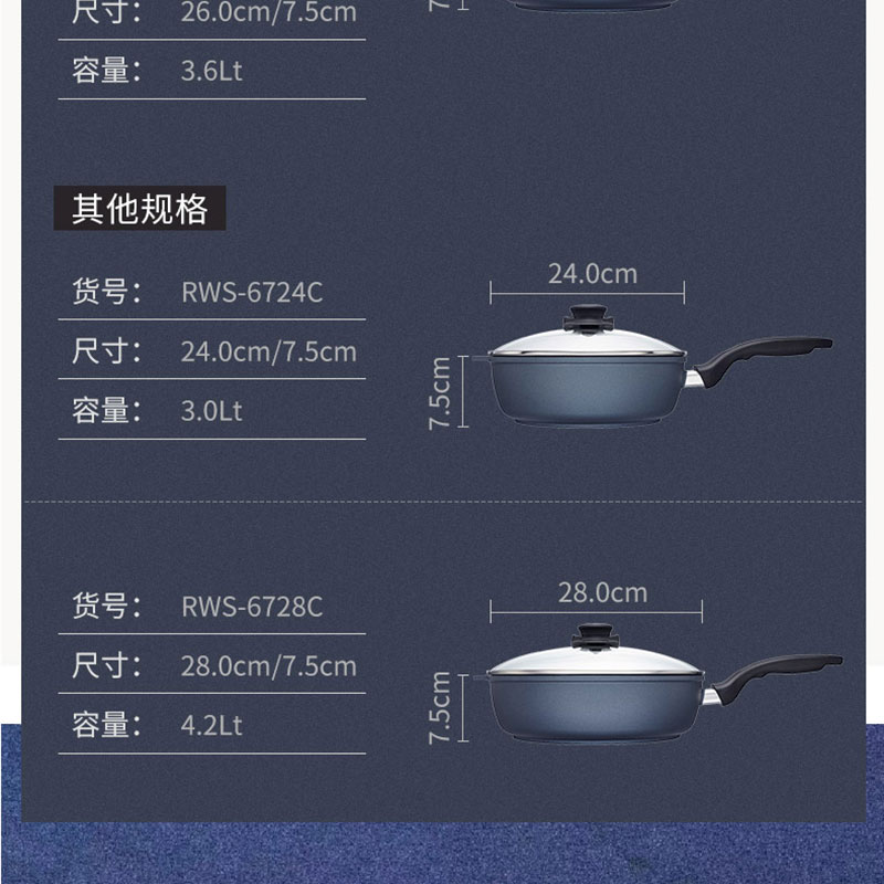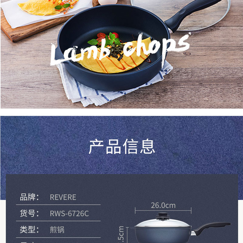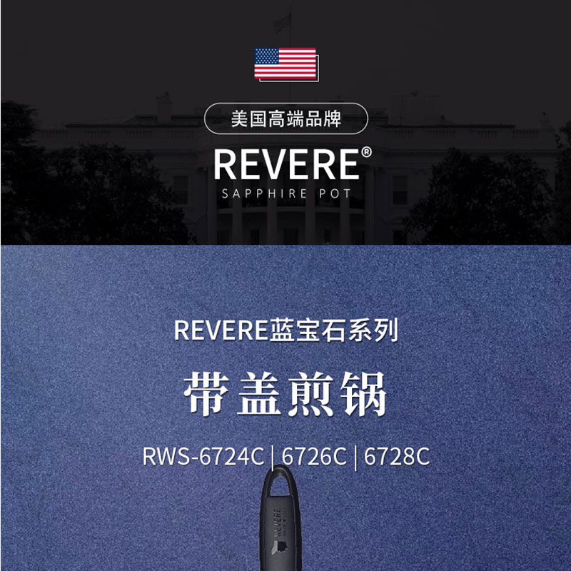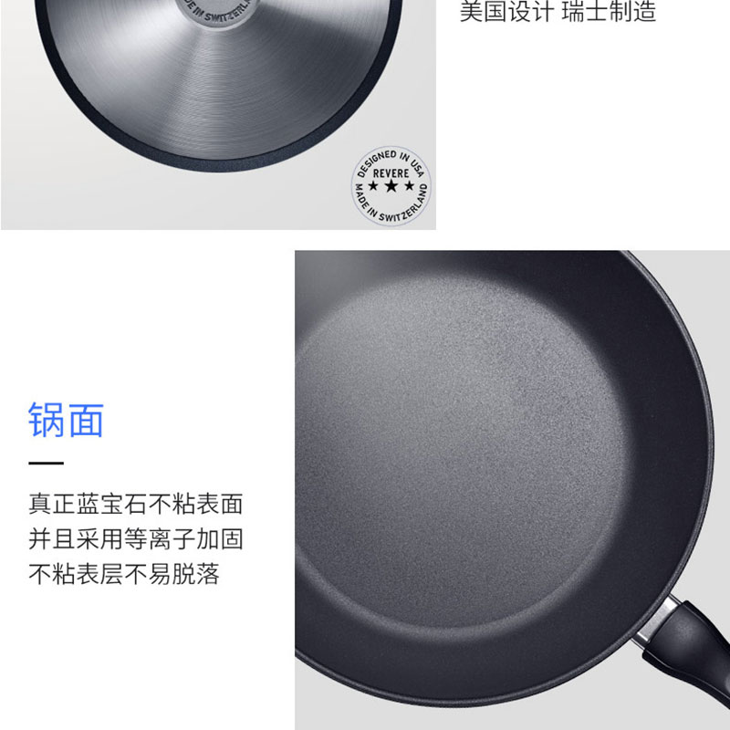 【美国康宁进口清仓特价】Revere蓝宝石系列带盖煎锅-28cm 蓝宝石不沾涂层RWS-6728C