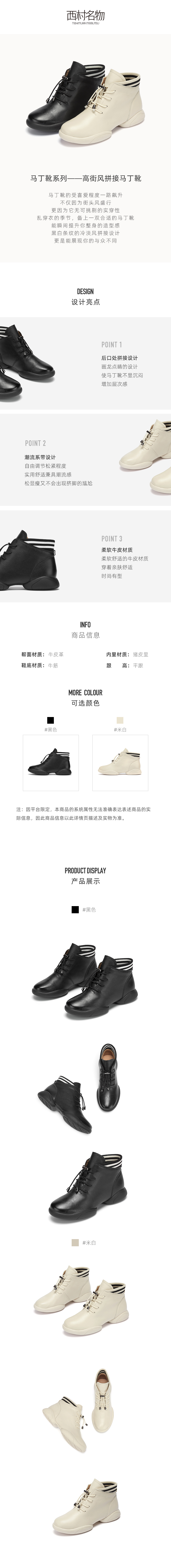 西村名物2020冬季新款马丁靴牛皮革平跟复古英伦风短靴T20DF40041