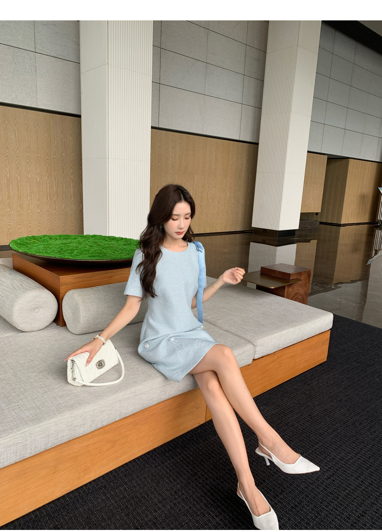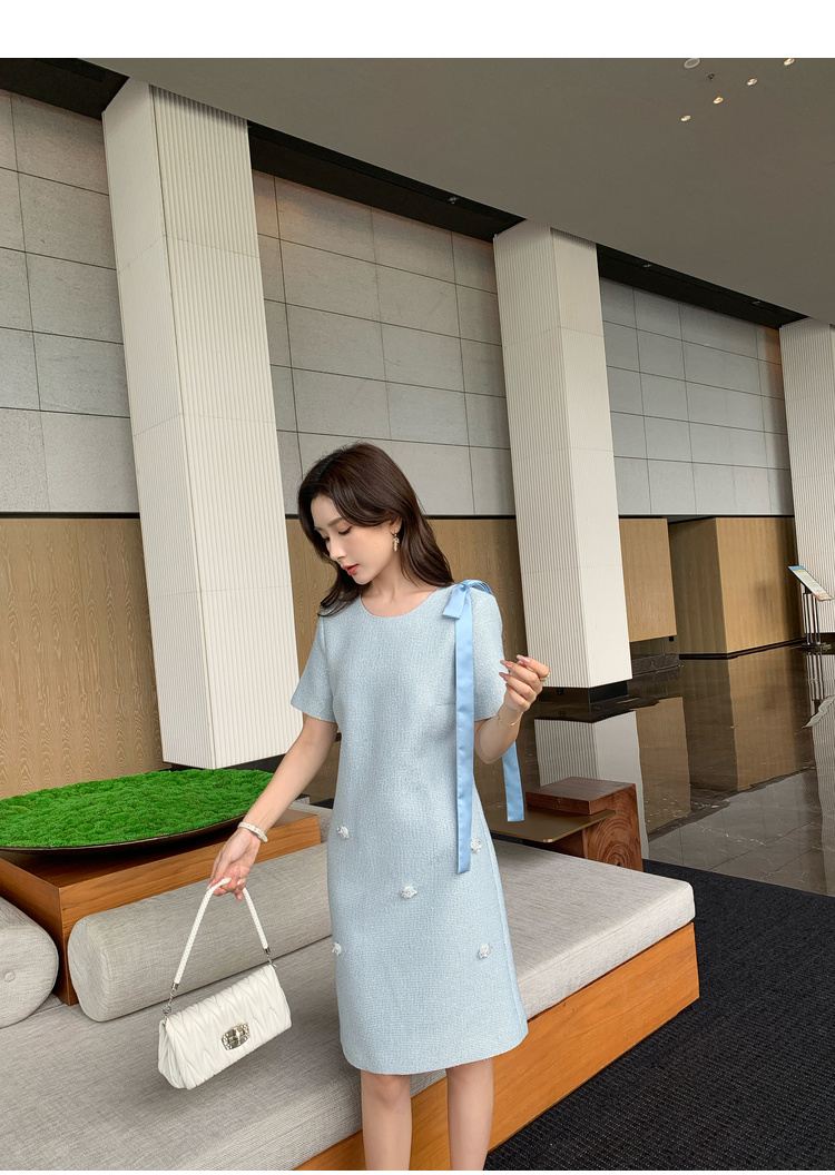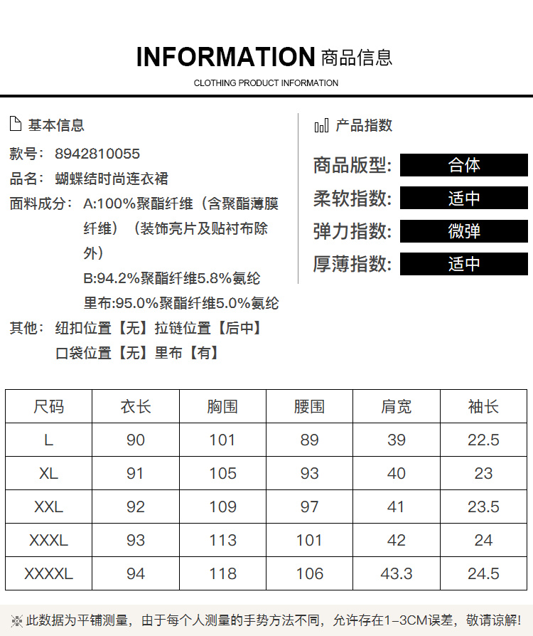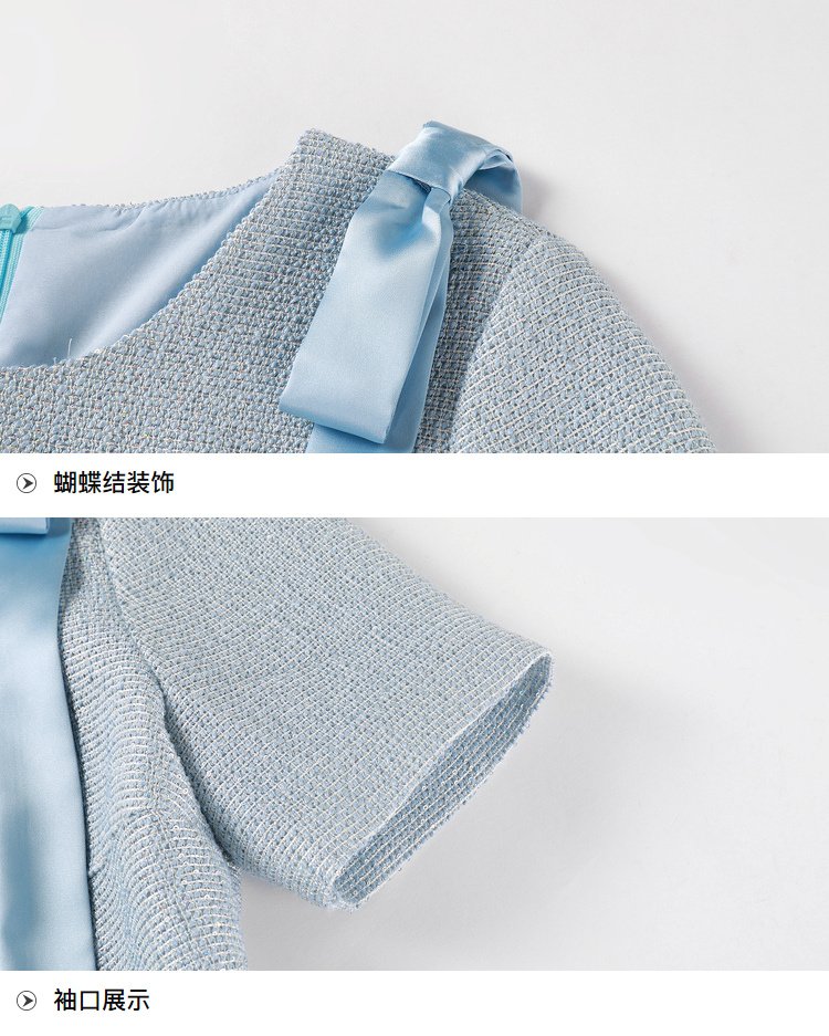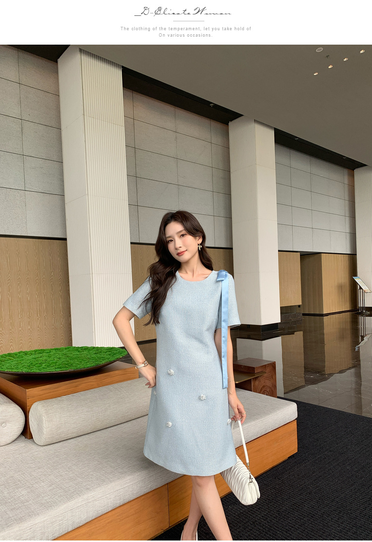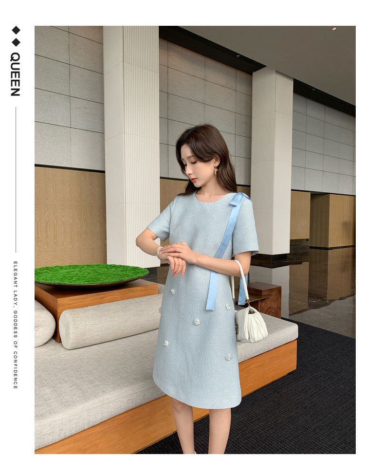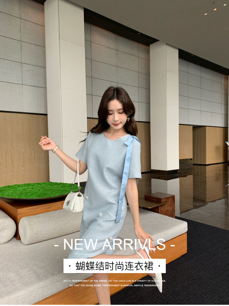 [奢姿轻奢系列]大码女装2025夏季立体装饰裙子胖妹妹蝴蝶结连衣裙8942810055【1】