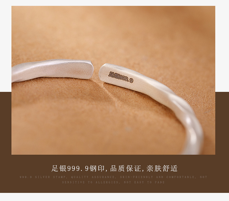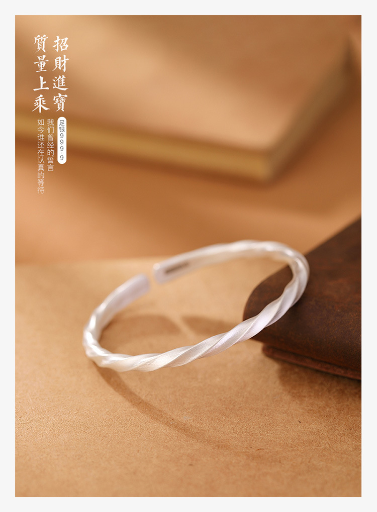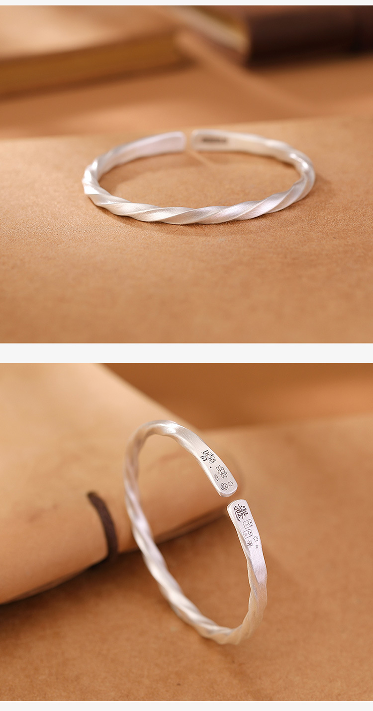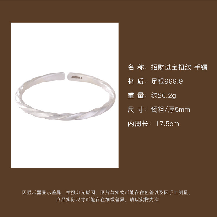 【日进斗金】S999银足银哑光扭纹吉祥如意手镯【CW-23125】