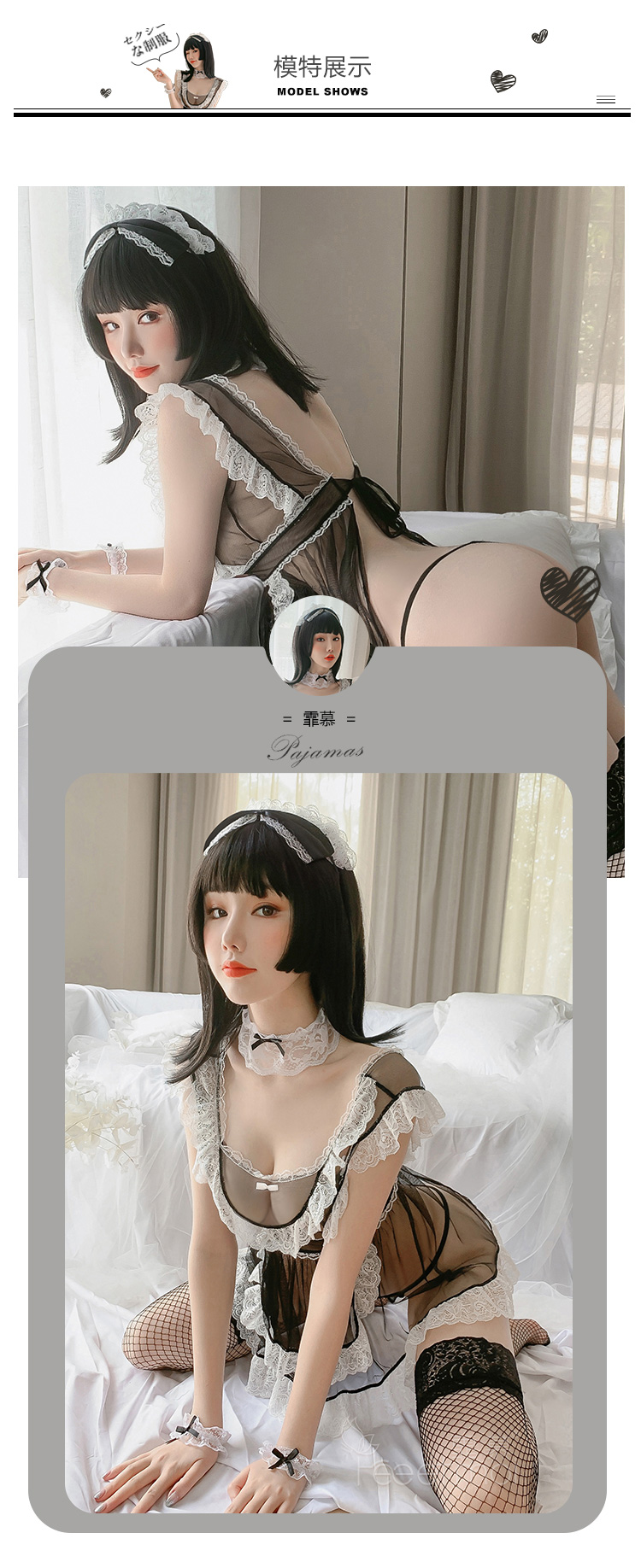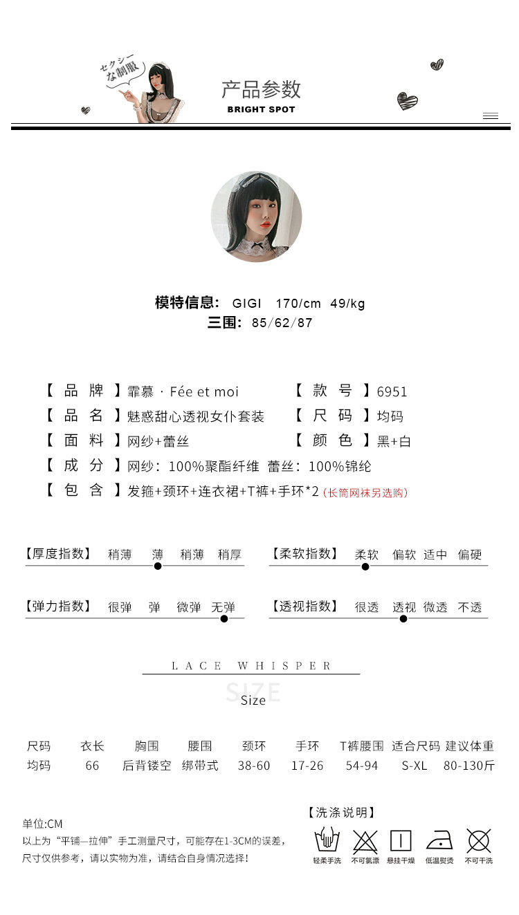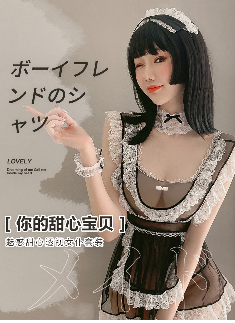 【温柔小女仆】情趣内衣 制服 蕾丝 网纱 后背 镂空 性感 女仆套装 外贸 6951