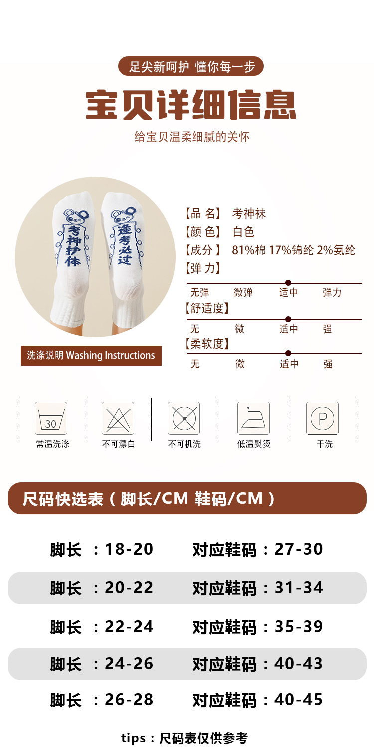 雅兰特满分考神袜白色袜子1双装/3双装【考神护体】【逢考必过】