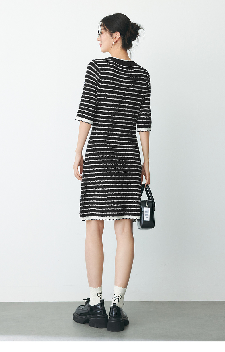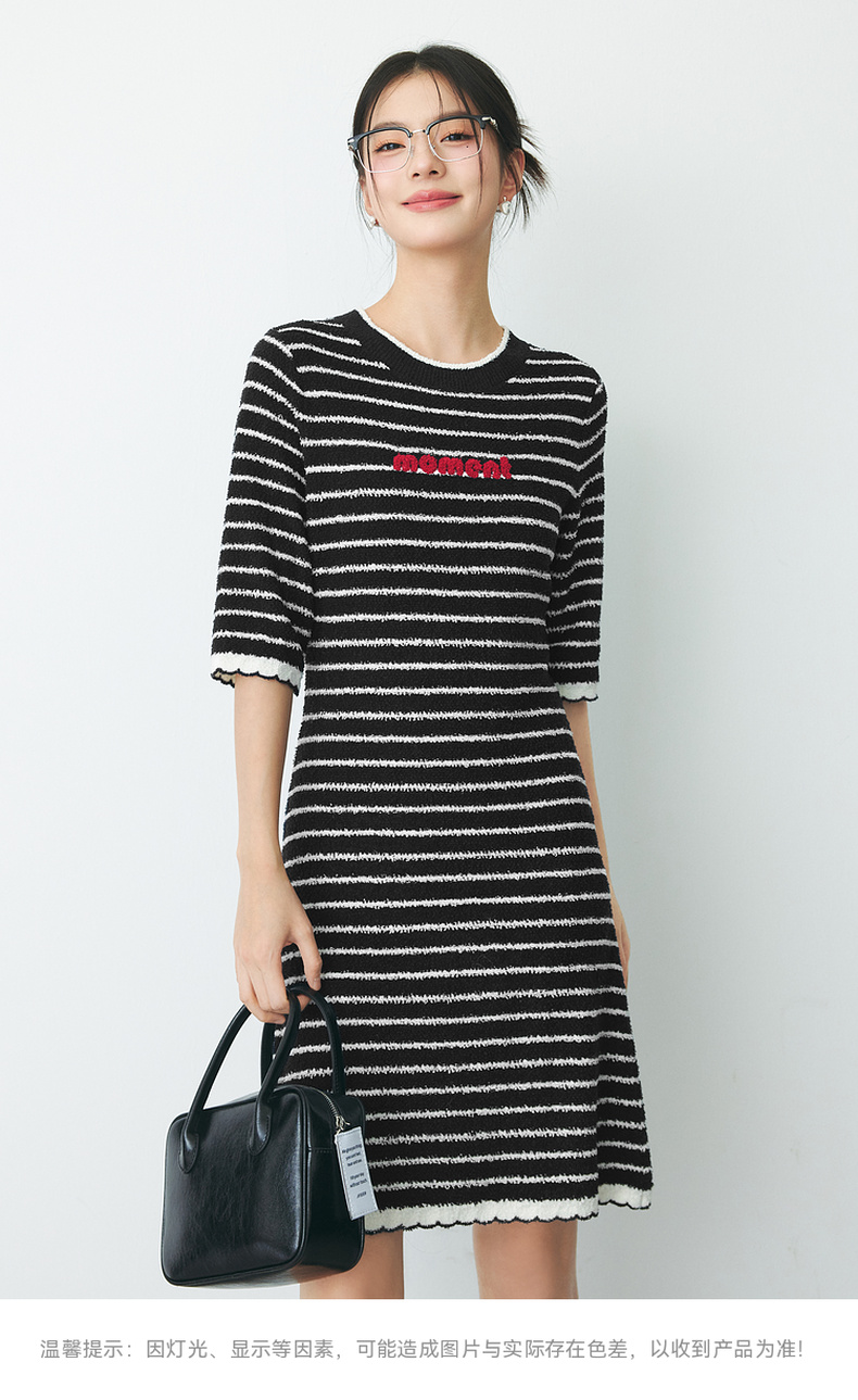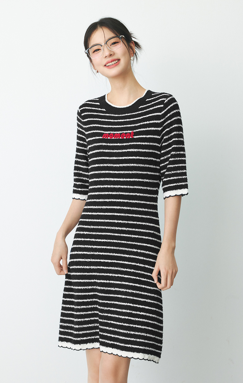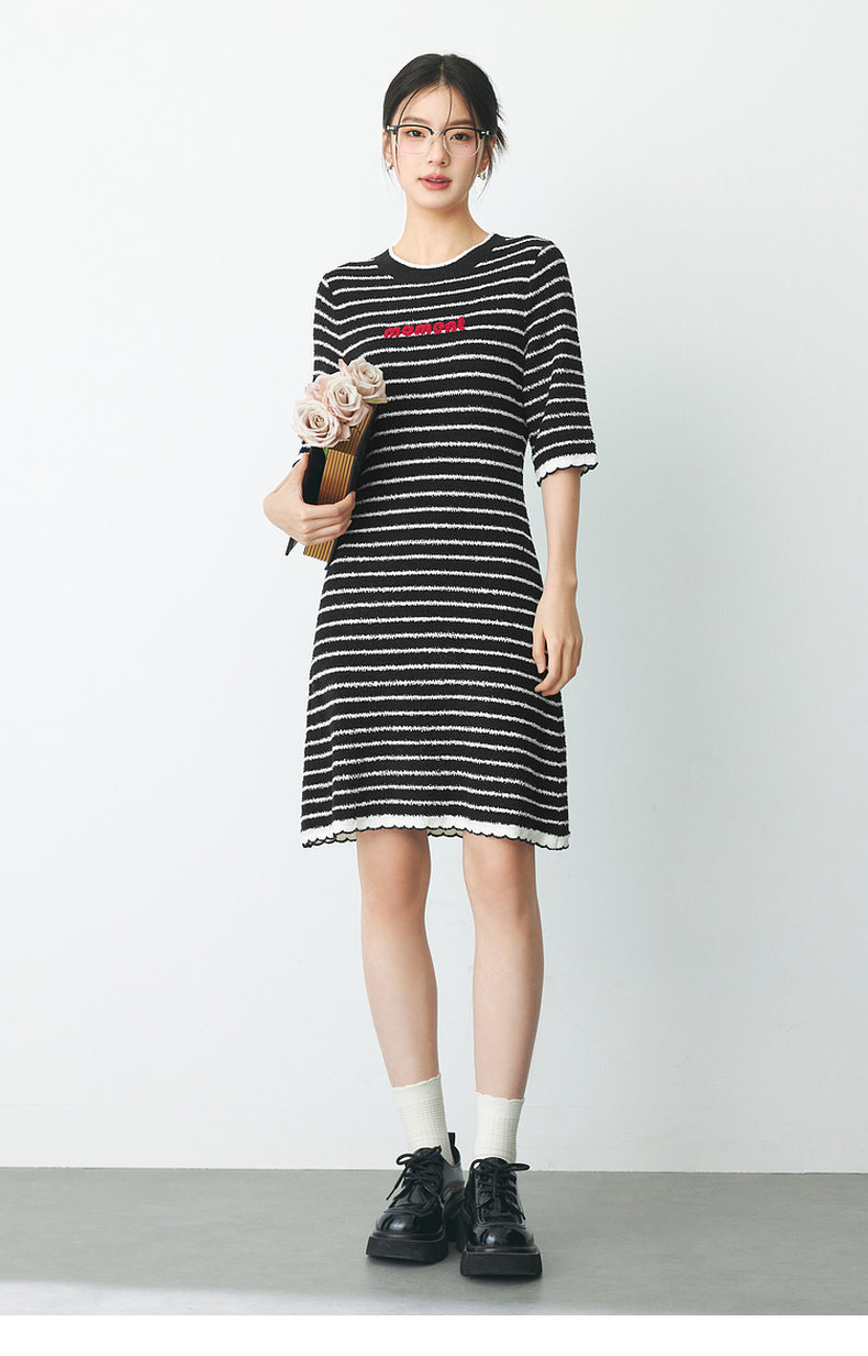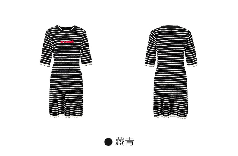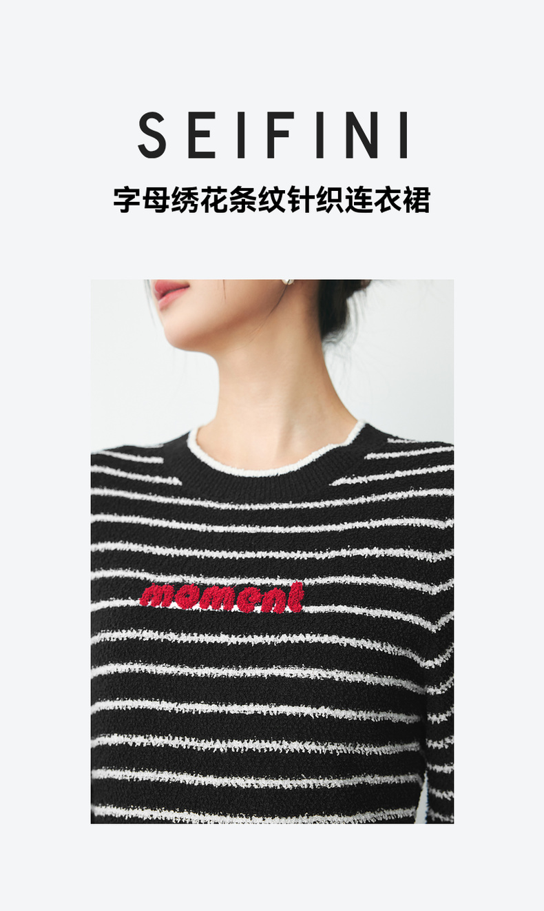 【严选】诗凡黎春经典条纹字母绣花毛织连衣裙SF2390651