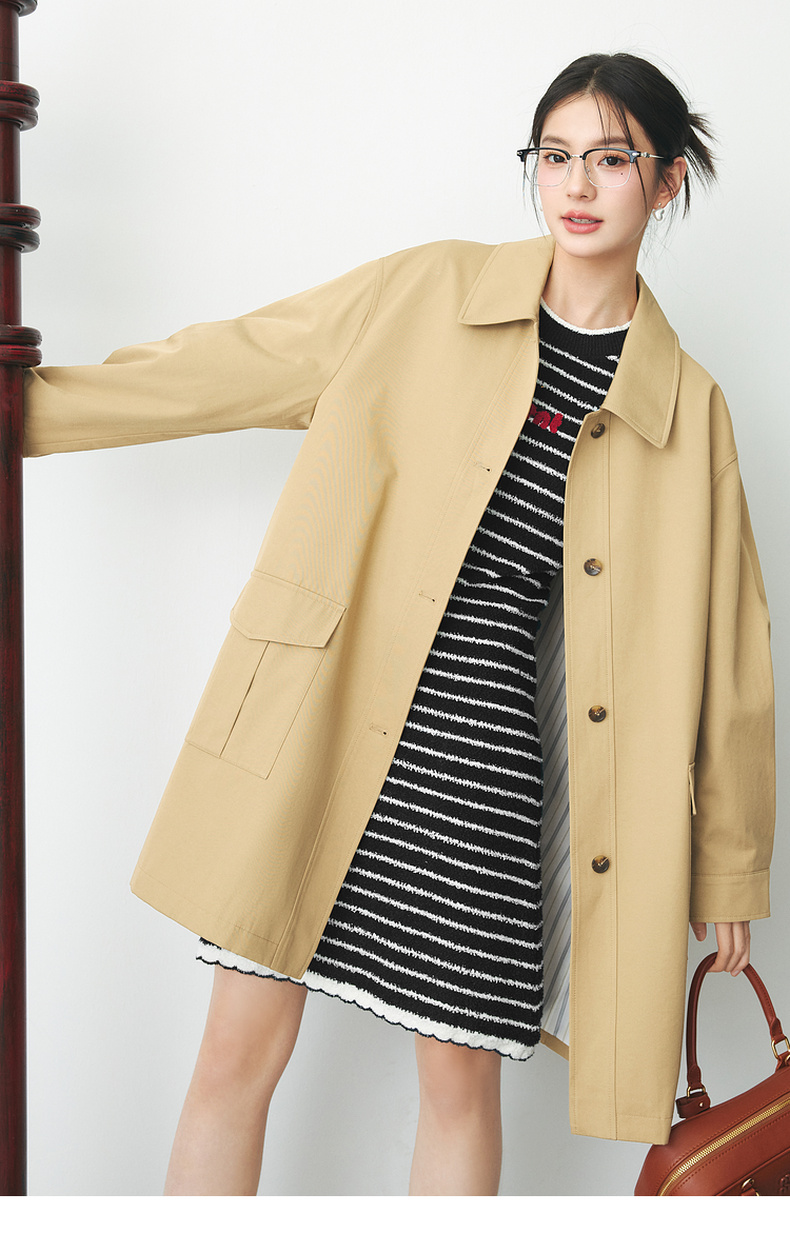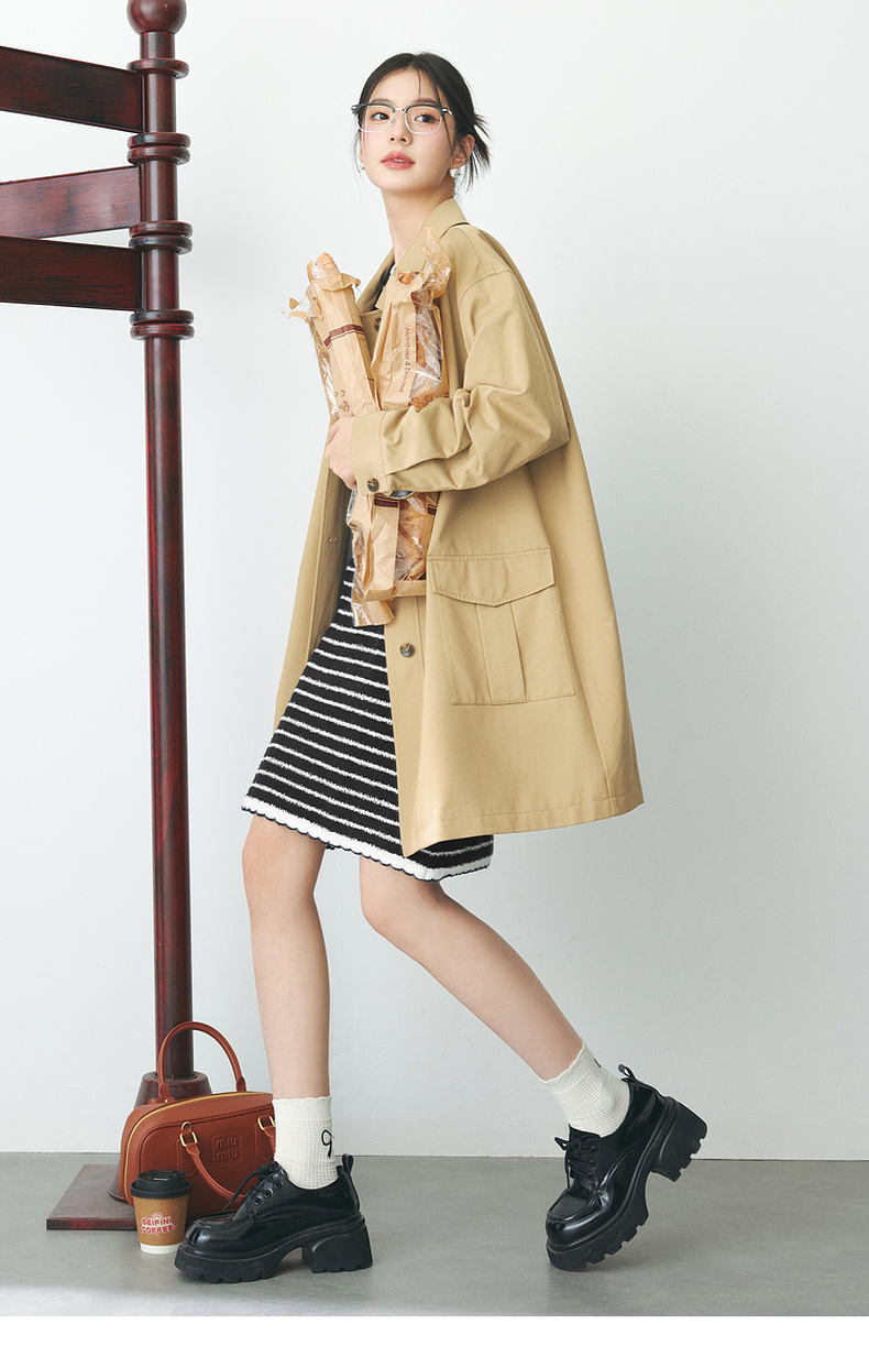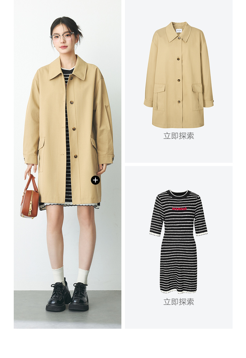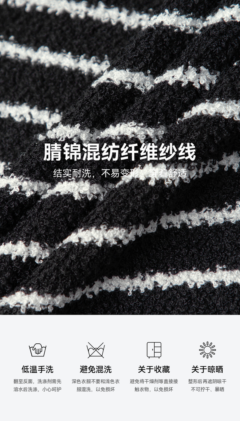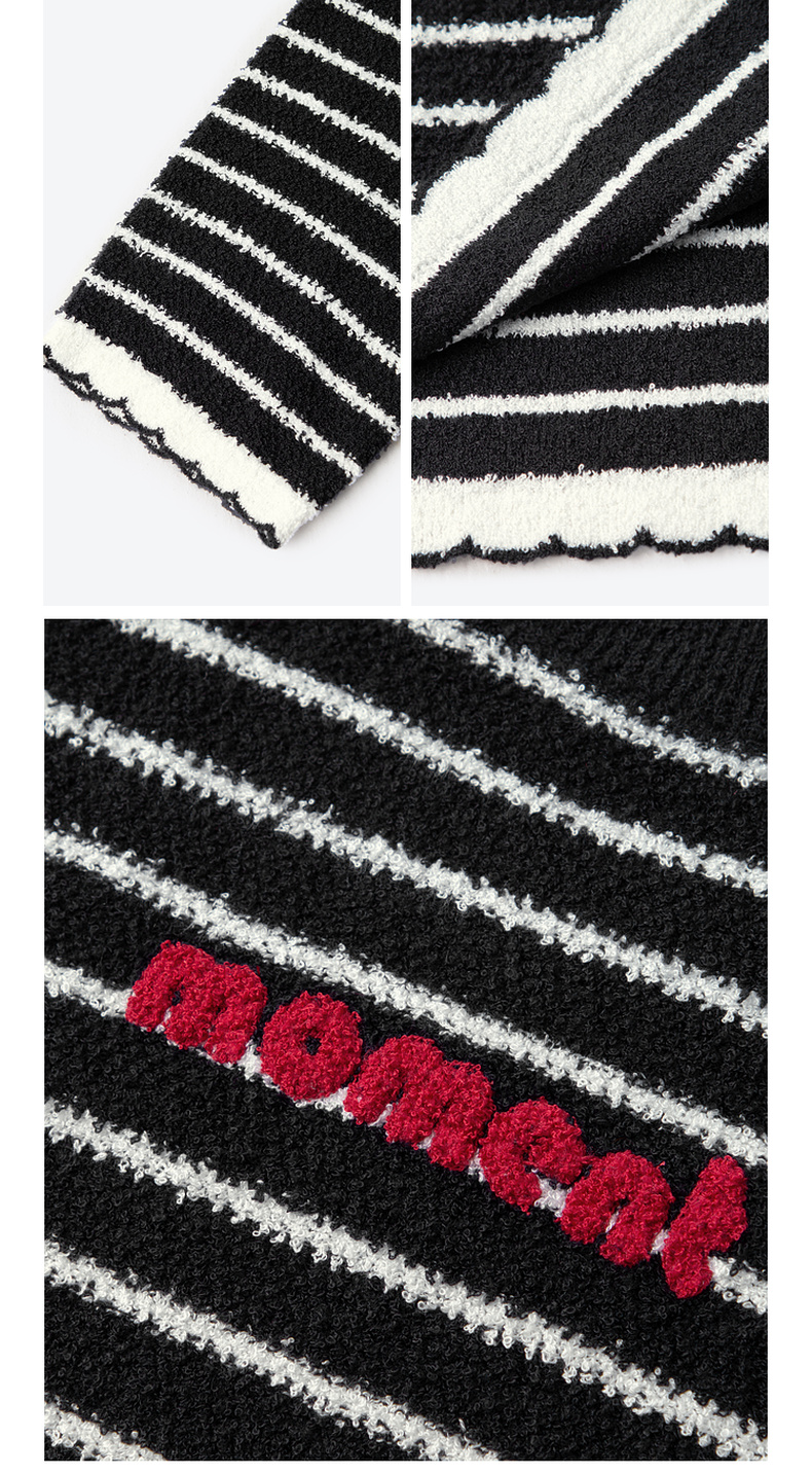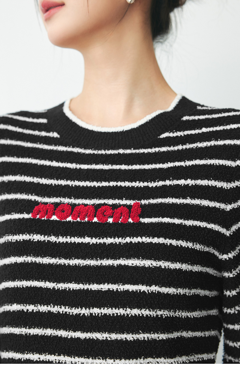 【严选】诗凡黎春经典条纹字母绣花毛织连衣裙SF2390651
