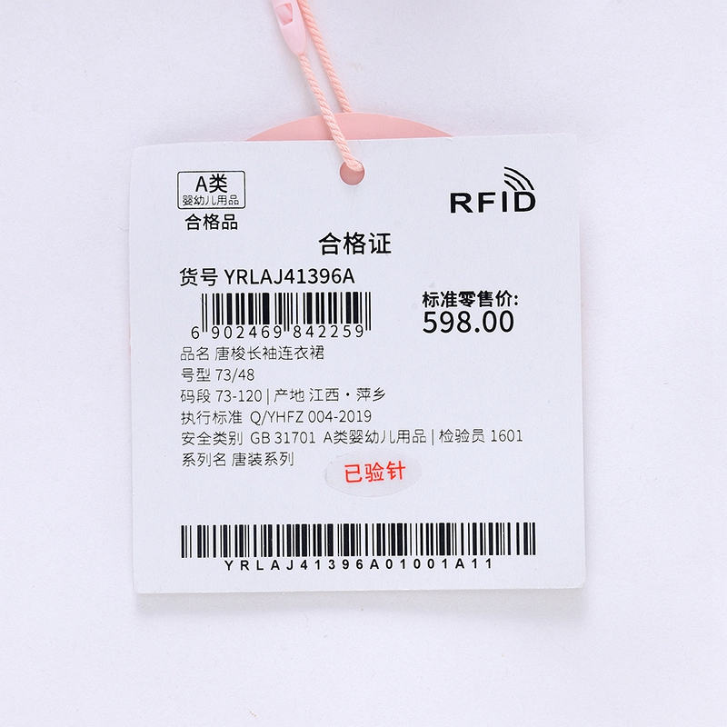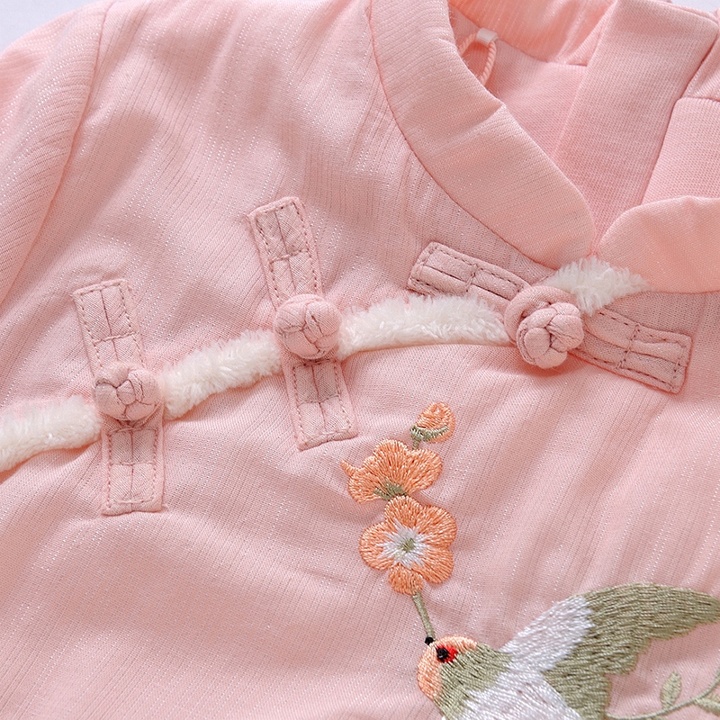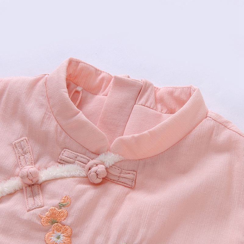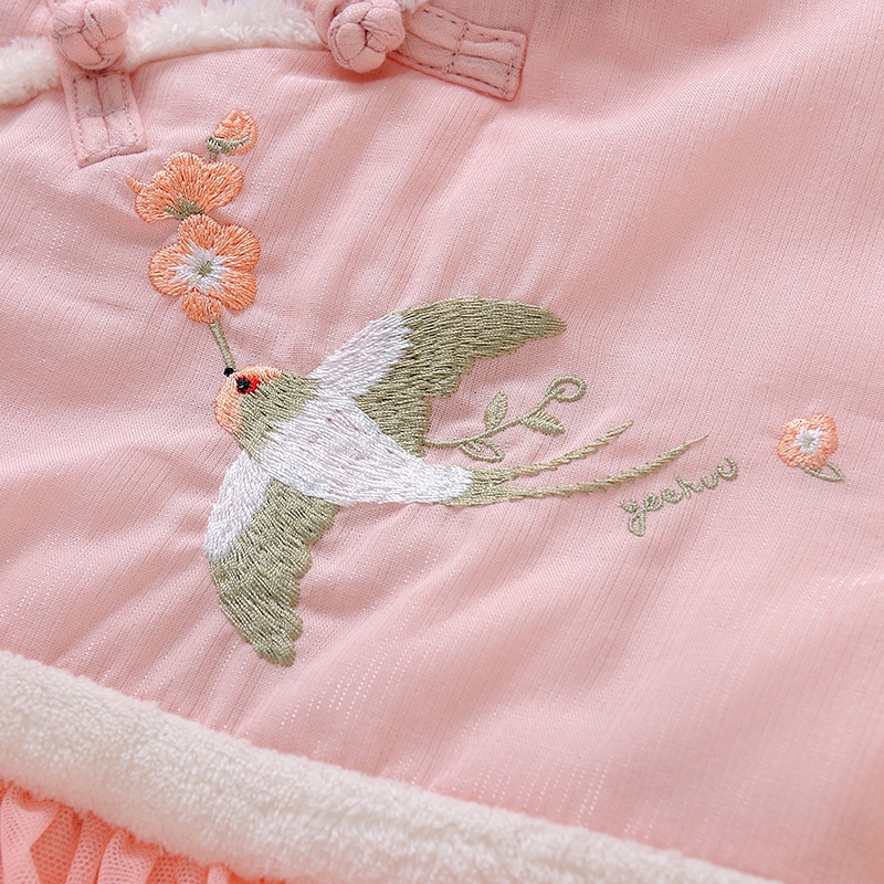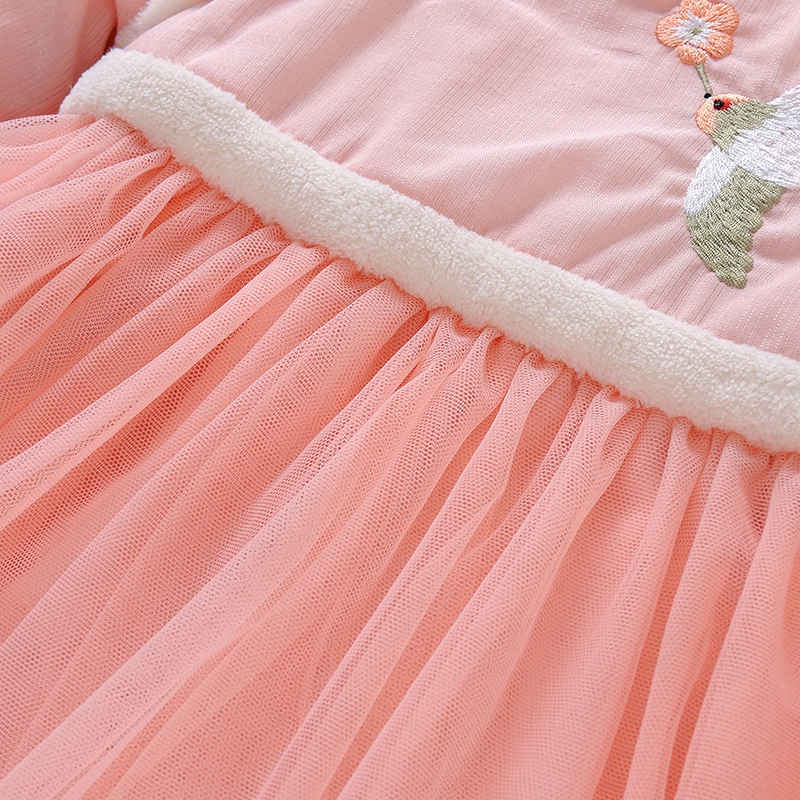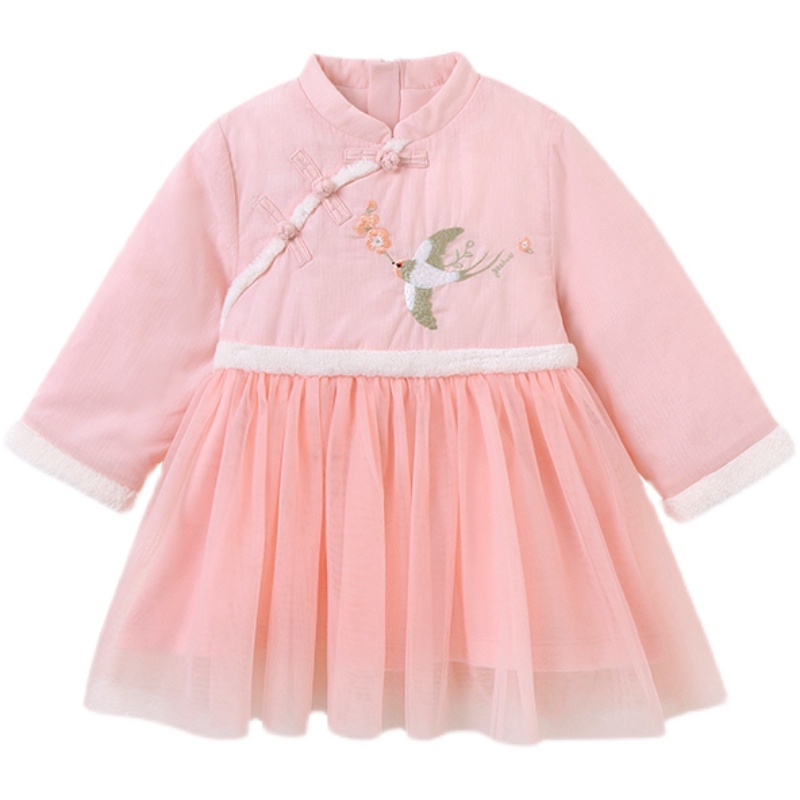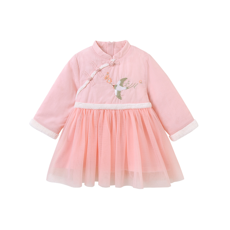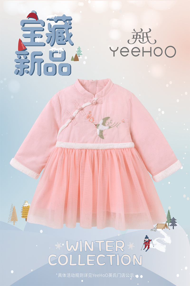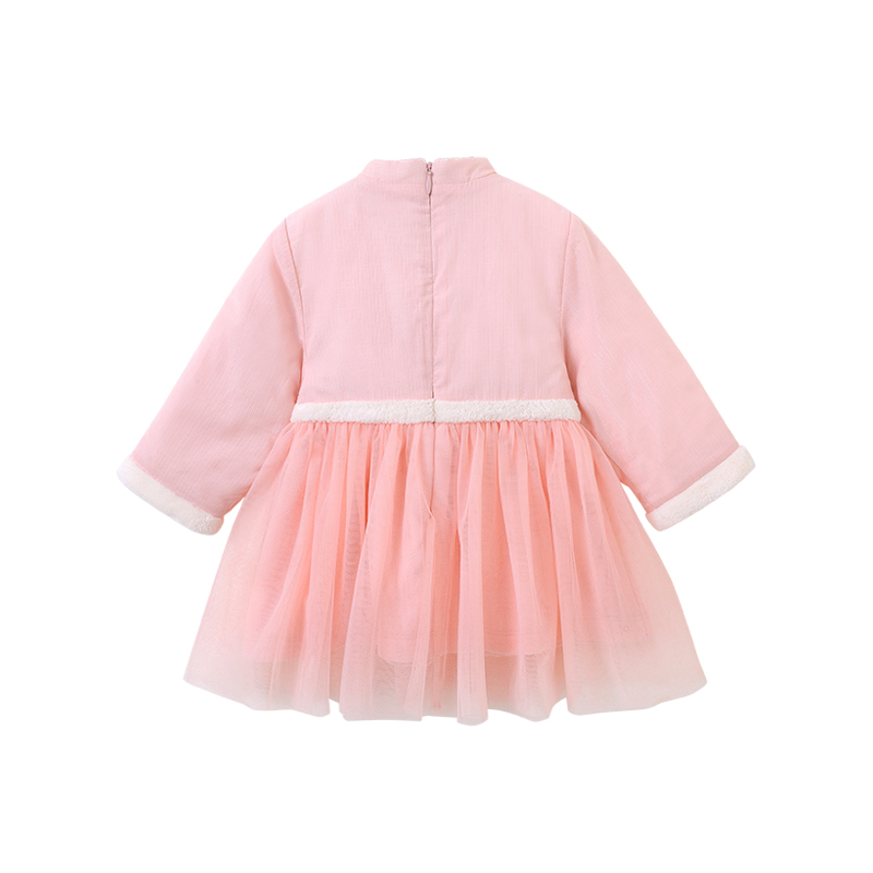 英氏-童衣类(冬)E1唐梭长袖连衣裙灰橘粉100CM
