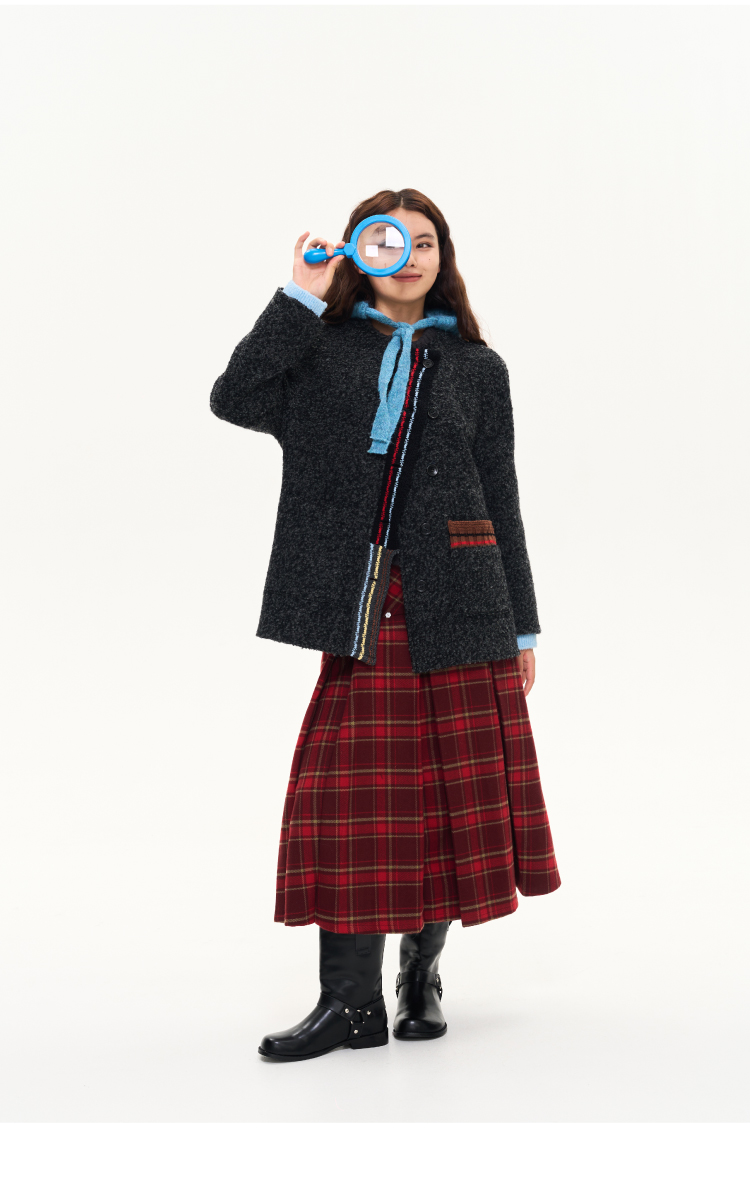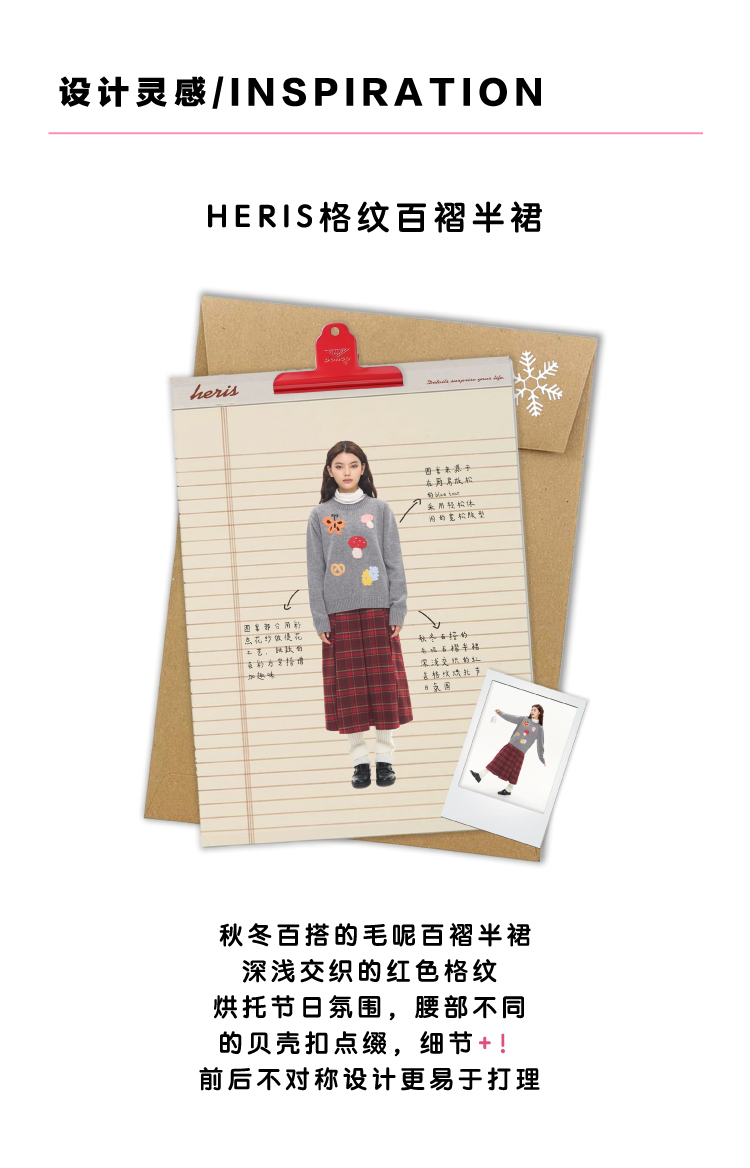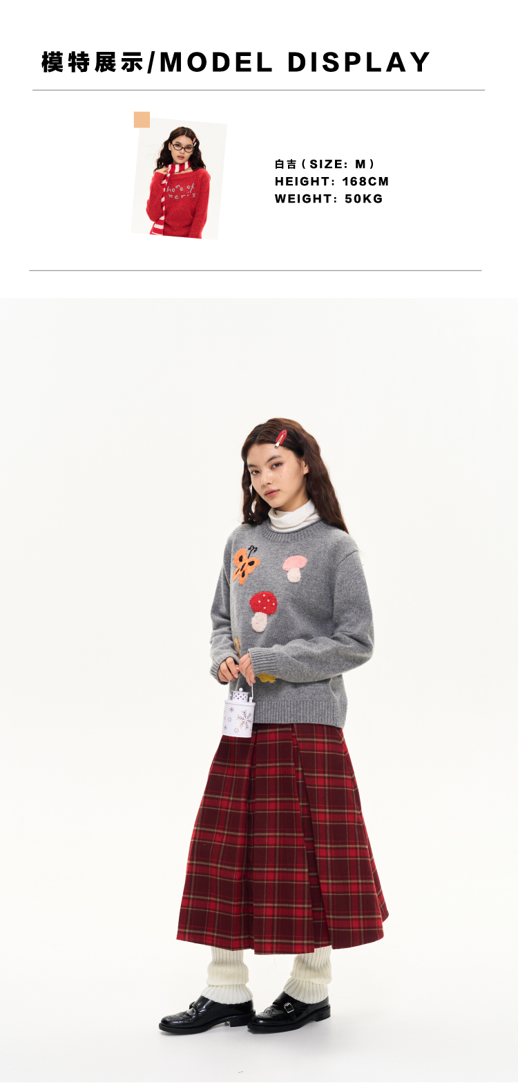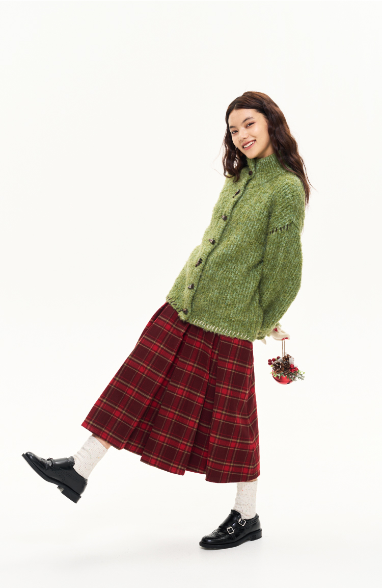heris/H44109/节日红色格纹 贝壳扣装饰 毛呢百褶半裙