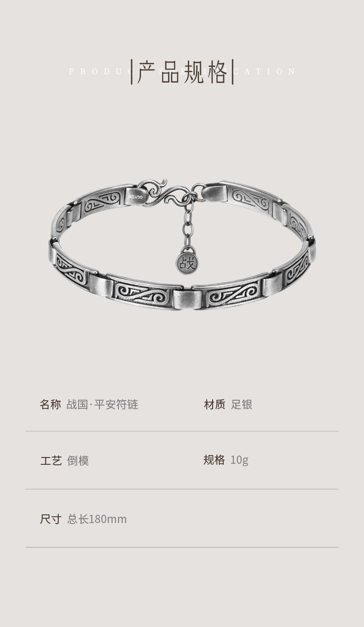 宫匠造办 十朝十美宫镯 战国·平安符链足银手链