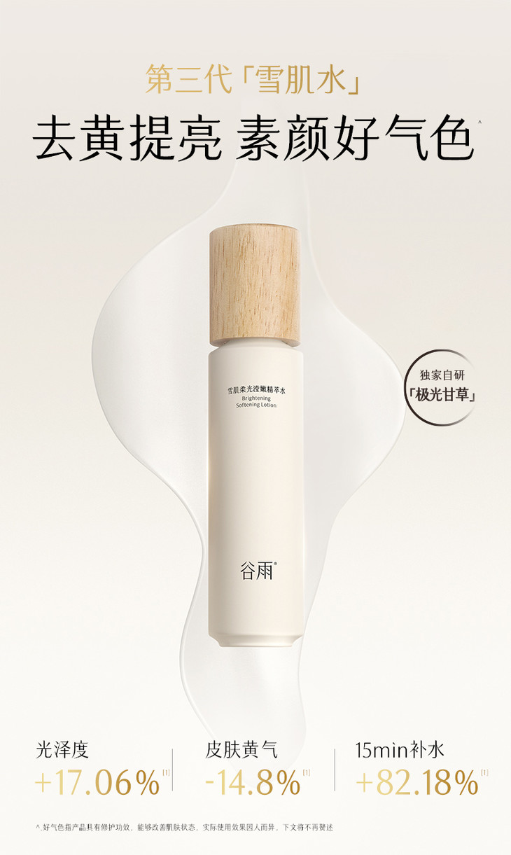 【会员日至享2倍积分】【双11超前购】重磅升级!谷雨「第三代雪肌水」雪肌柔光滢嫩精萃水120ml 减黄提亮 素颜好气色爽肤水补水保湿提亮湿敷