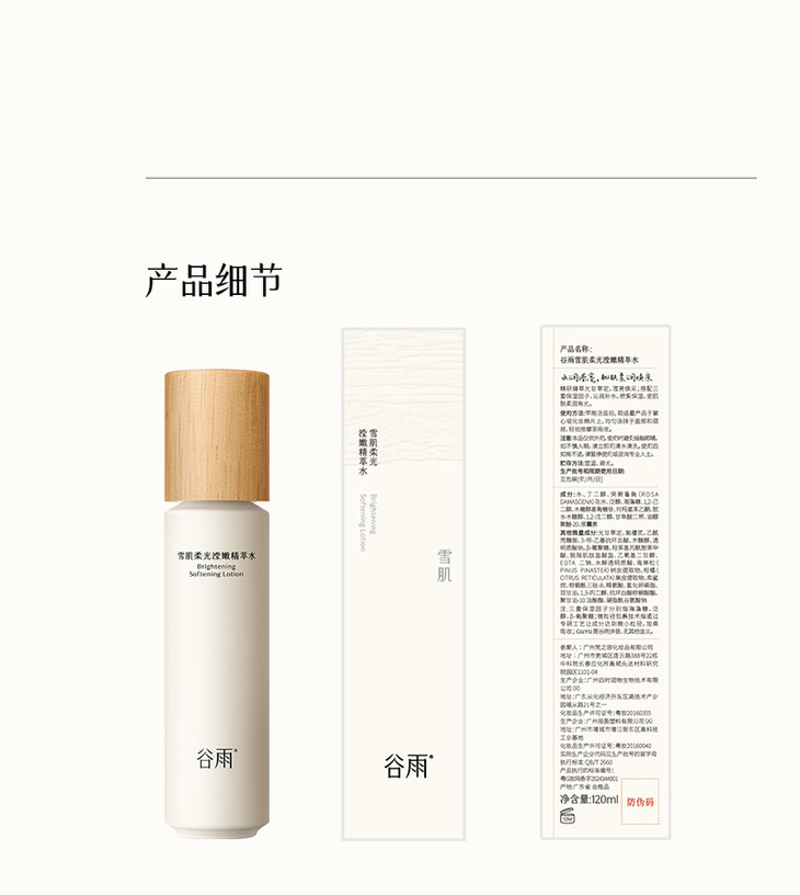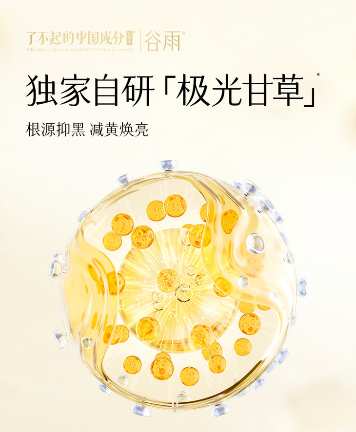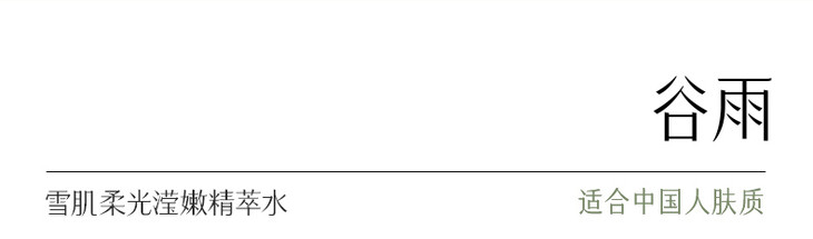 - 谷雨,更适合中国人肤质的植萃美白。专研中华珍稀美白植萃光甘草定,深入研究中国人肤质特点,打造中国女性独有的仙气白。